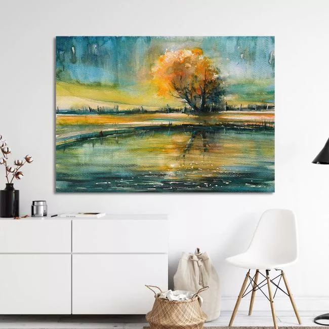 Πίνακας σε καμβά Λίμνη το φθινόπωρο, Autumn tree reflecting in lake