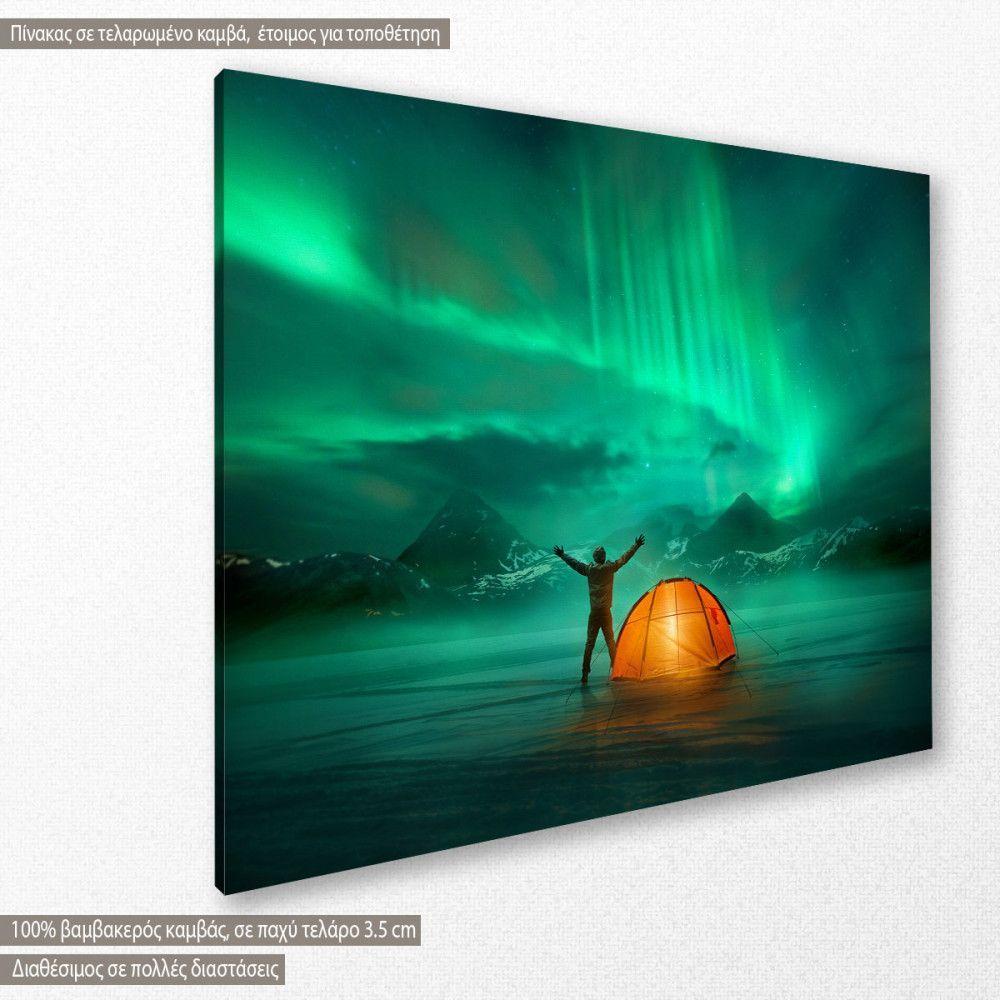 Πίνακας σε καμβά Βόρειο Σέλας, Camping in wild northern mountains