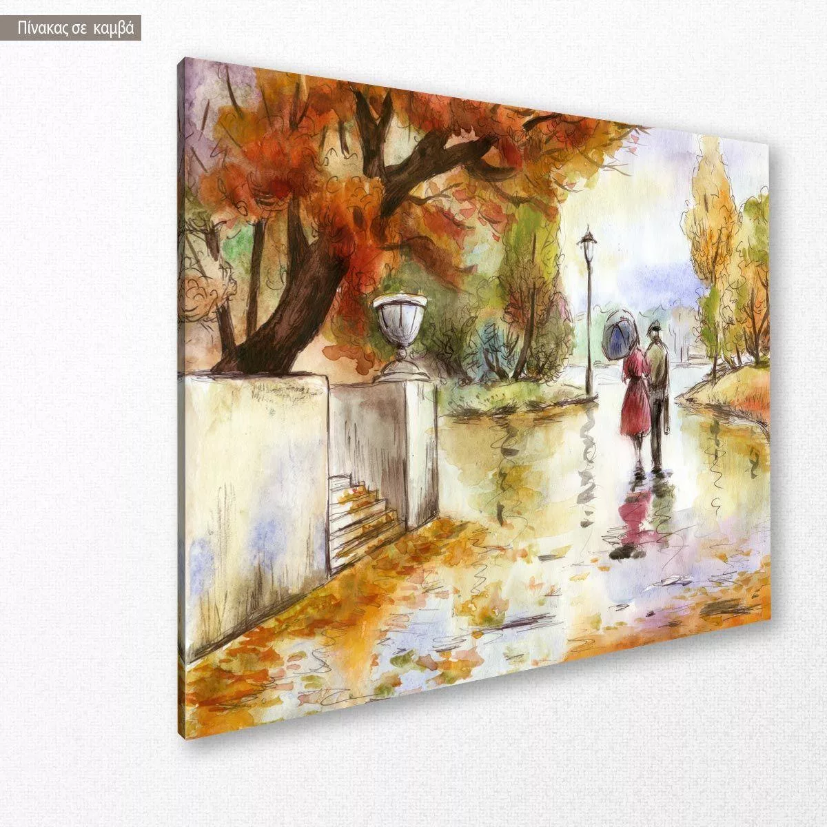 Πίνακας σε καμβά Ζευγάρι φθινόπωρο, Couple in the autumn park