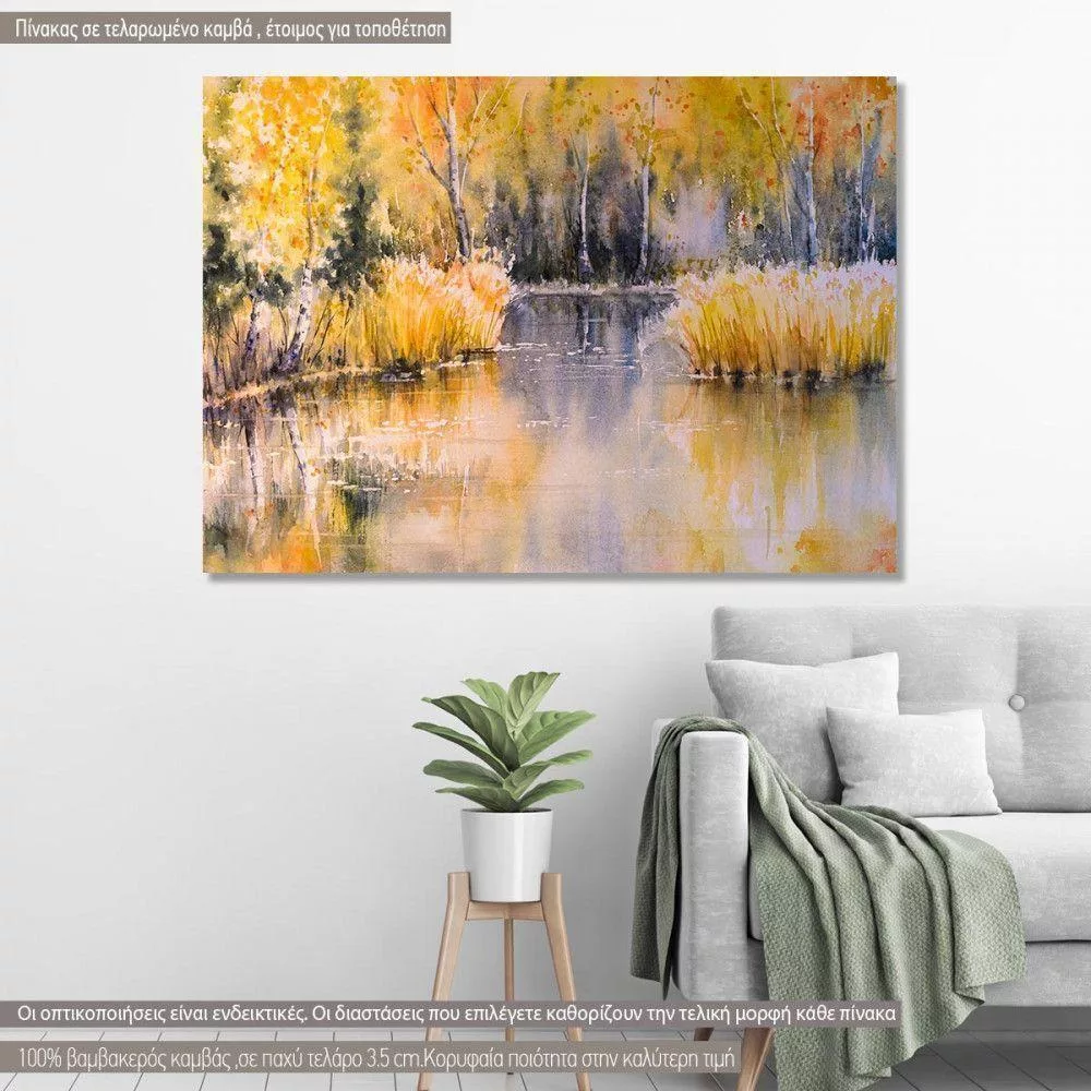 Πίνακας σε καμβά Λίμνη στο δάσος, Forest lake in autumn colors