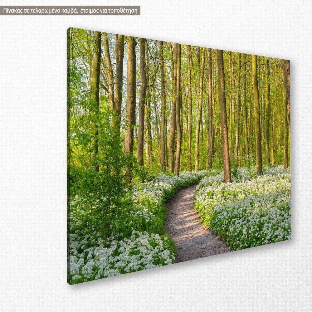 Πίνακας σε καμβά Δάσος με λουλούδια, Forest with blooming white flowers