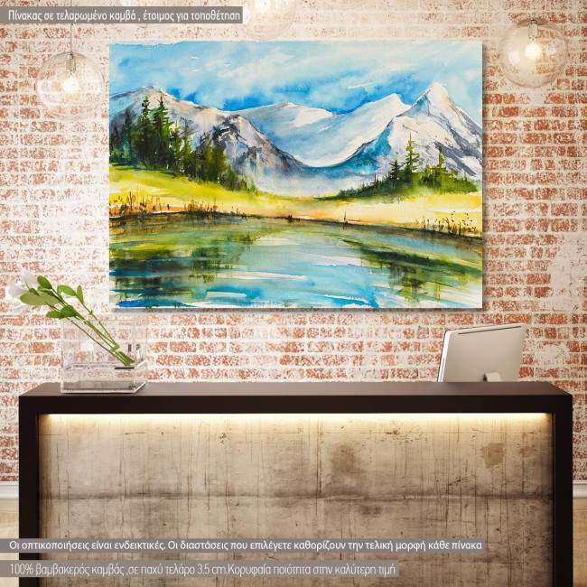 Πίνακας σε καμβά Λίμνη στο βουνό, Lake with Mountains