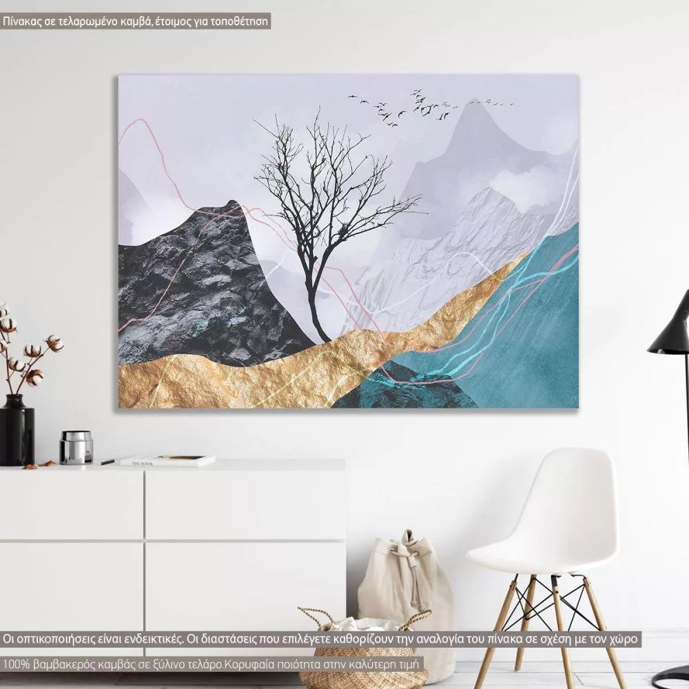 Πίνακας σε καμβά Lone tree with flying birds I