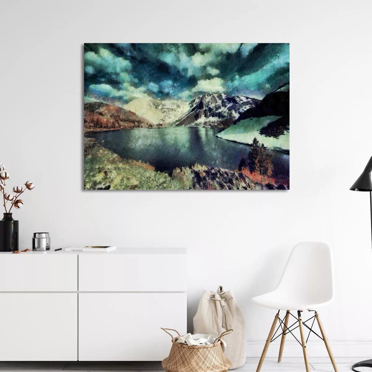 Πίνακας σε καμβά Λίμνη στο βουνό, Snow Mountain lake painting