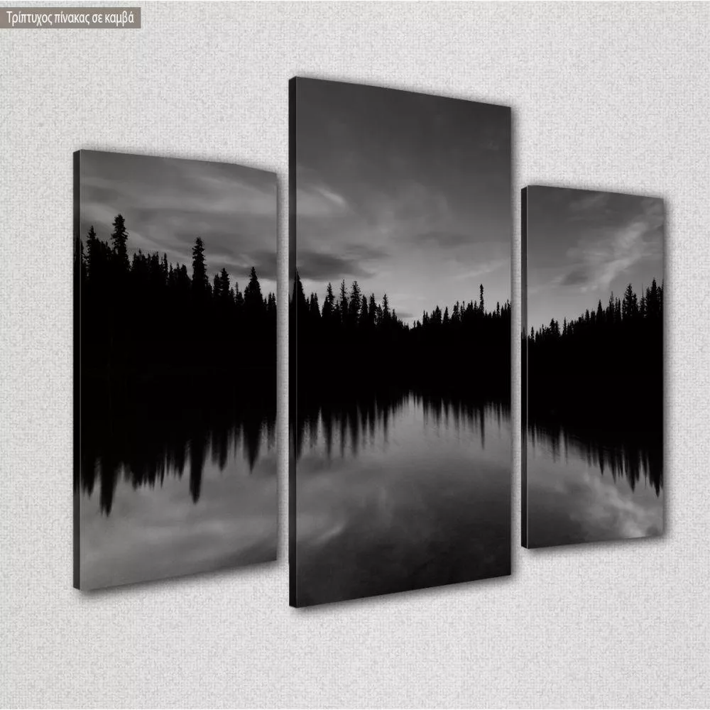 Πίνακας σε καμβά Dark tree lake, τρίπτυχος ασύμμετρος