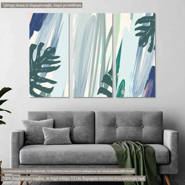 Πίνακας σε καμβά Tropical pastel, τρίπτυχος