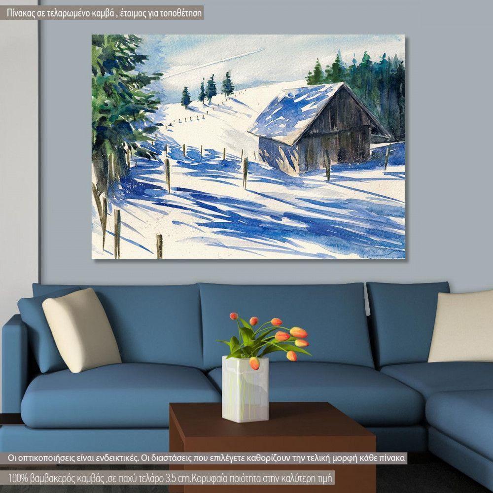 Πίνακας σε καμβά Τοπίο το χειμώνα, Winter landscape with small house