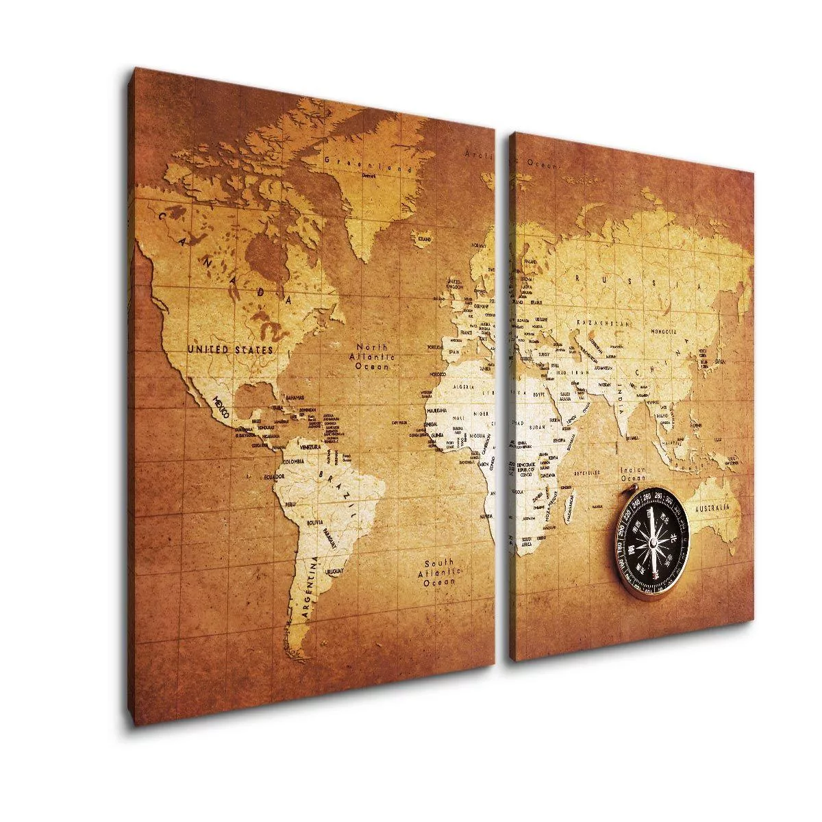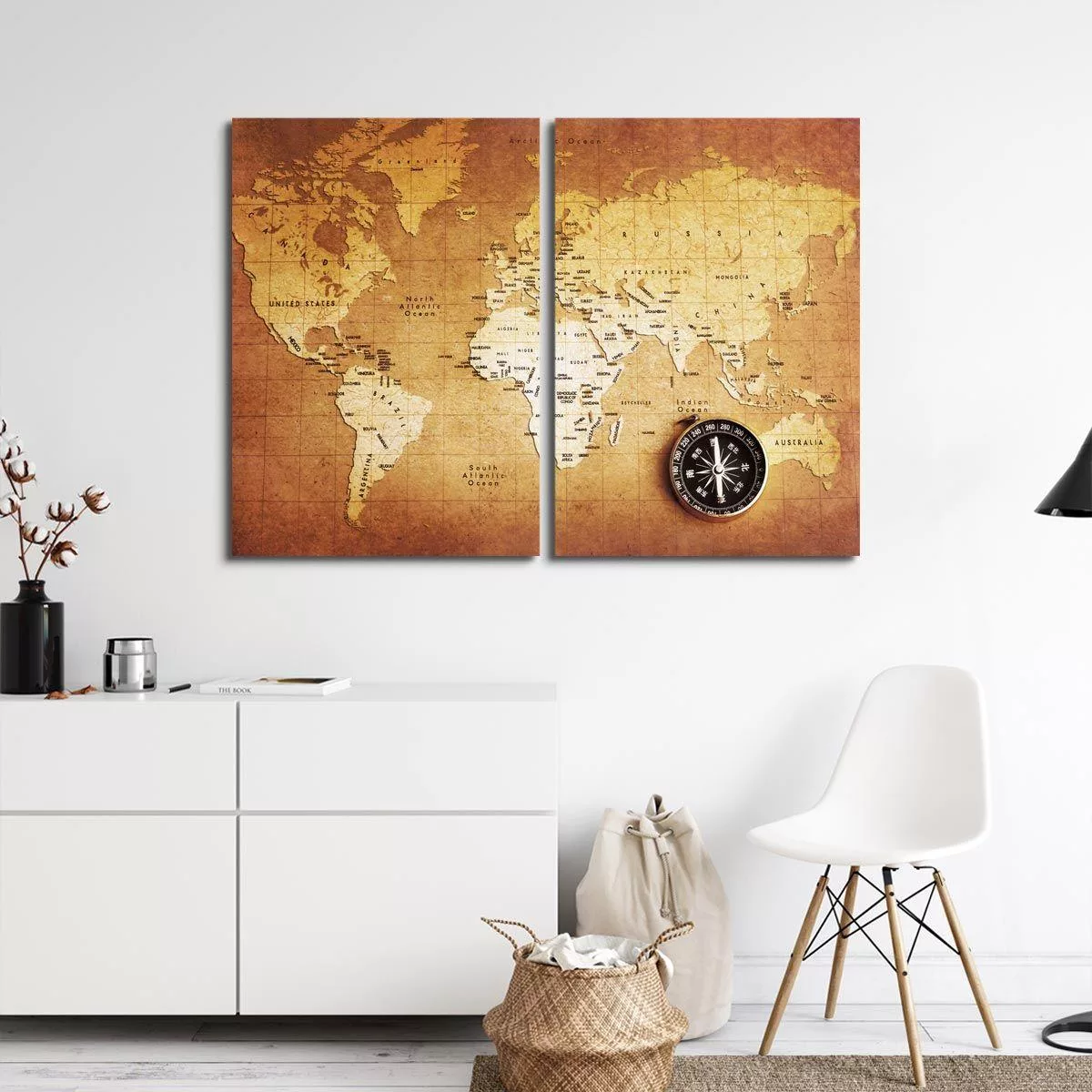Πίνακας σε καμβά Παγκόσμιος χάρτης, δίπτυχος