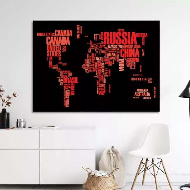 Πίνακας σε καμβά Ο κόσμος σε λέξεις, πολύχρωμο