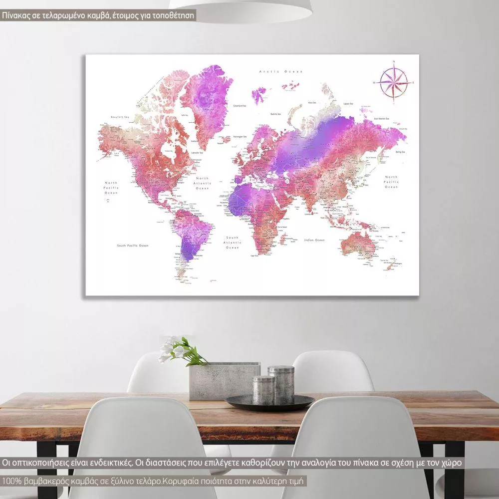 Πίνακας σε καμβά Purple red world map