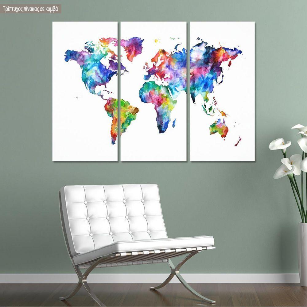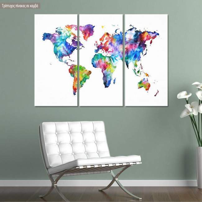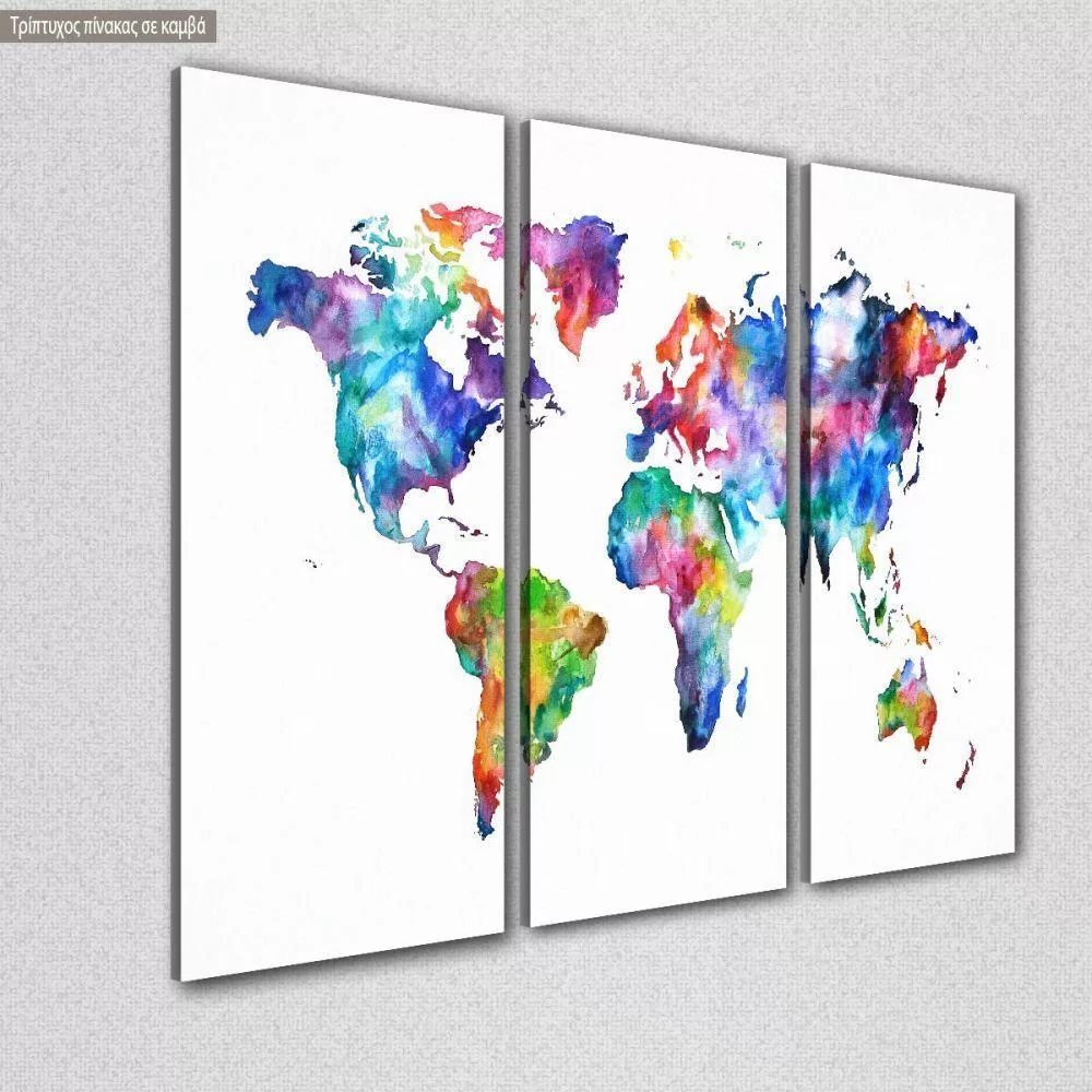Πίνακας σε καμβά Colorful world map I, τρίπτυχος