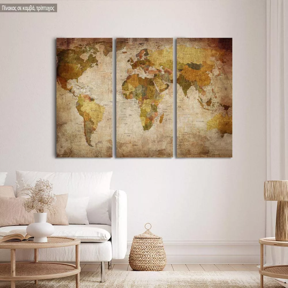 Πίνακας σε καμβά Παγκόσμιος χάρτης vintage, τρίπτυχος