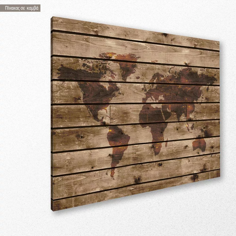 Πίνακας σε καμβά World map on wood