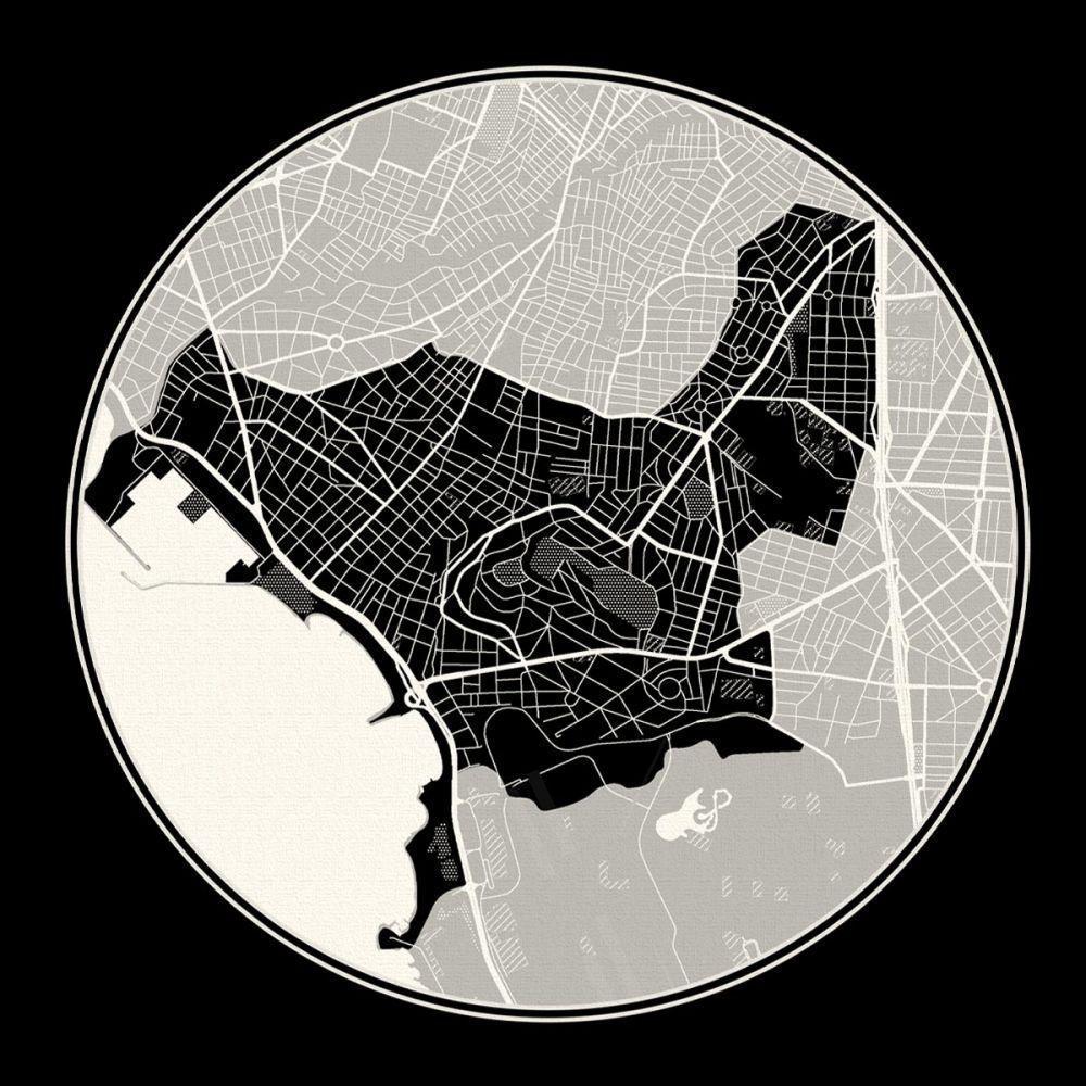 Πίνακας σε καμβά χάρτης Άλιμος, Cartography BW