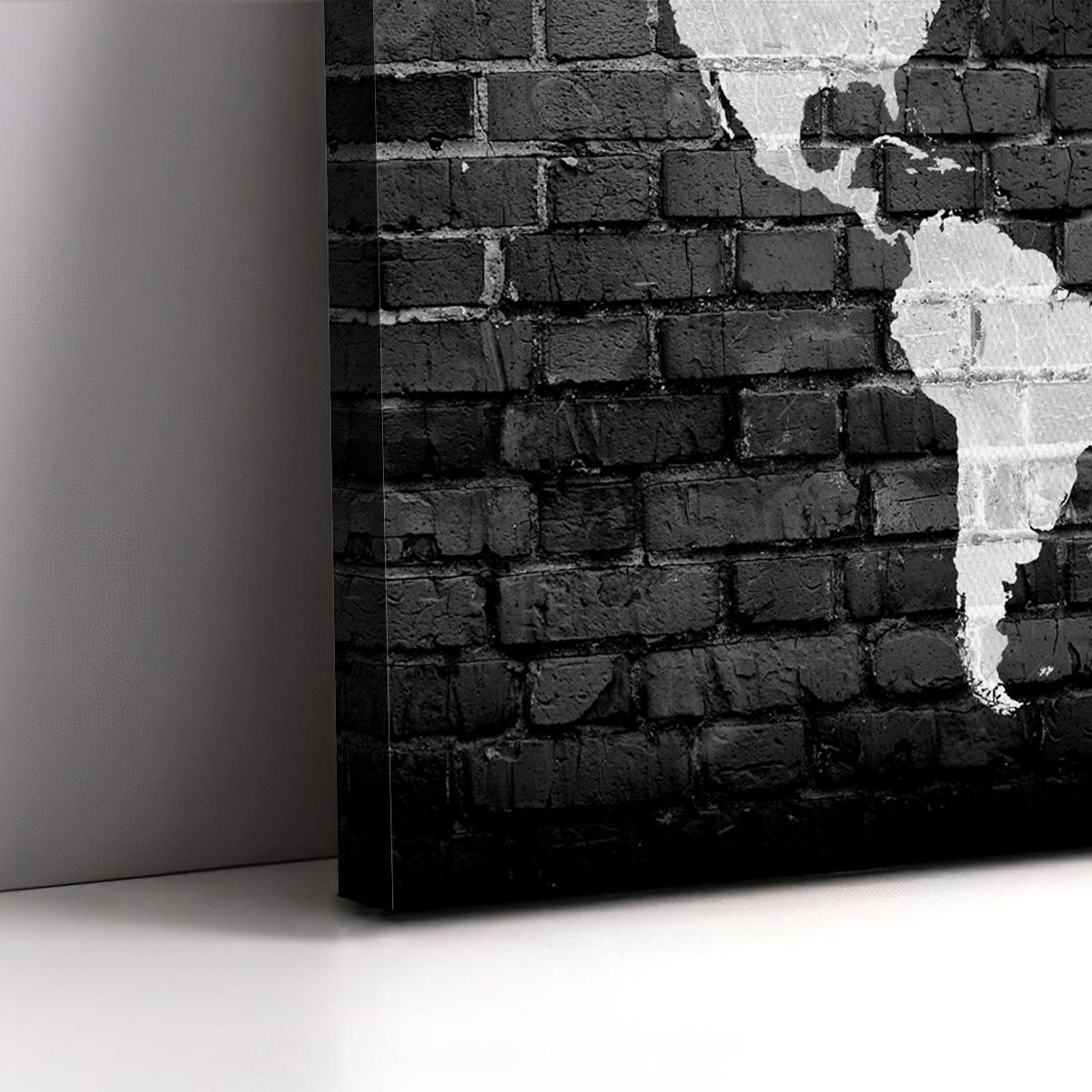 Πίνακας σε καμβά χάρτης παγκόσμιος, λευκός σε μαύρο τοίχο, Bricks World Map White on Black