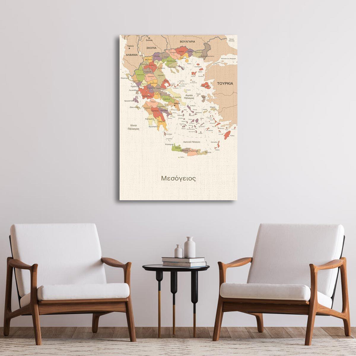 Πίνακας σε καμβά Χάρτης Ελλάδας vintage texture,στα Ελληνικά