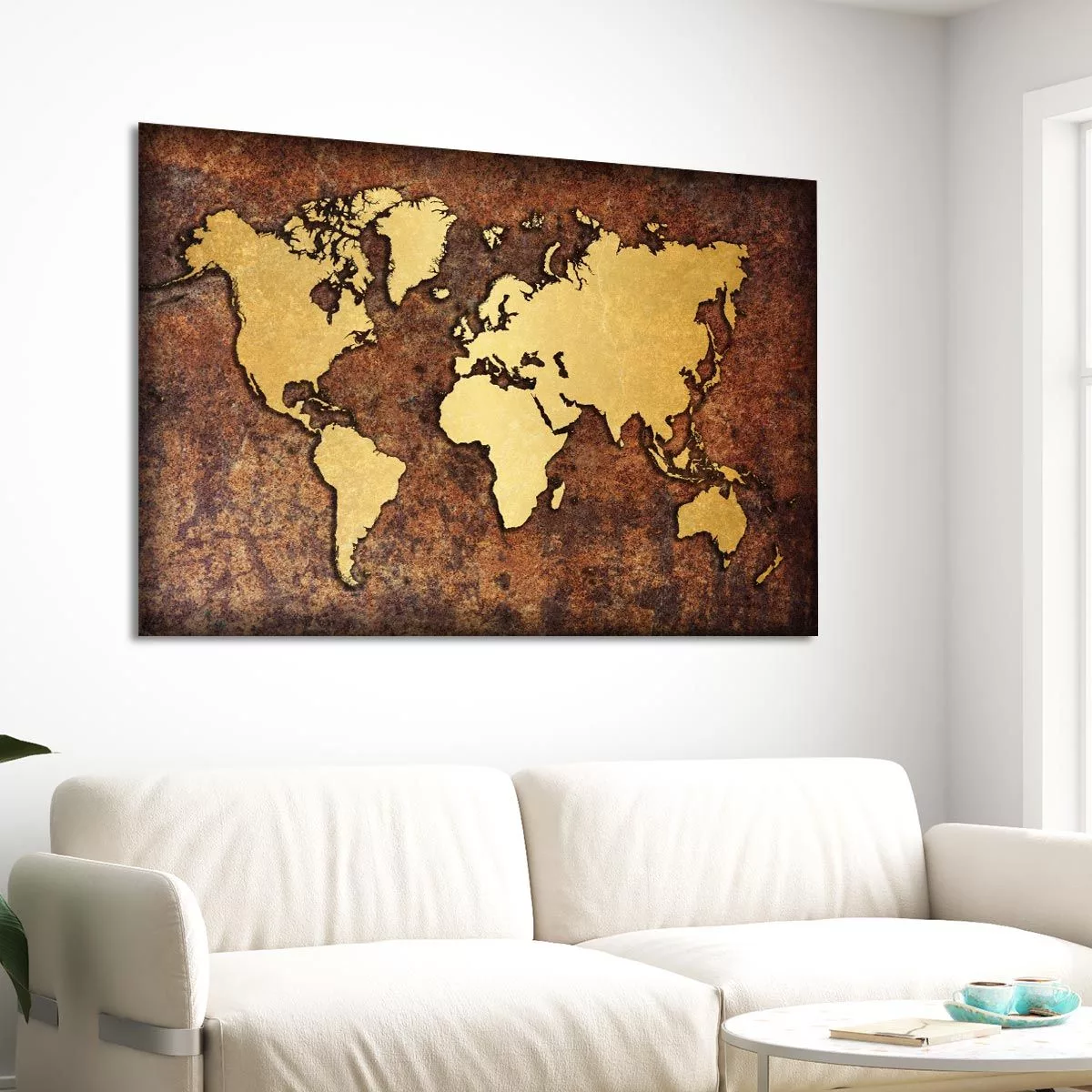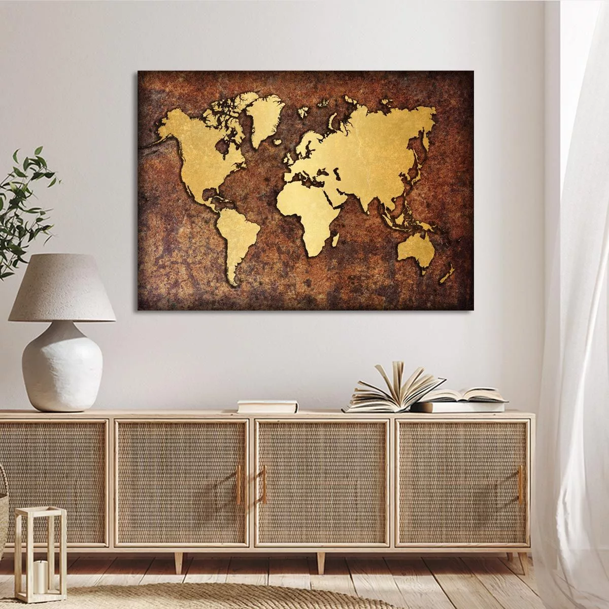 Πίνακας σε καμβά παγκόσμιος χάρτης rusty gold