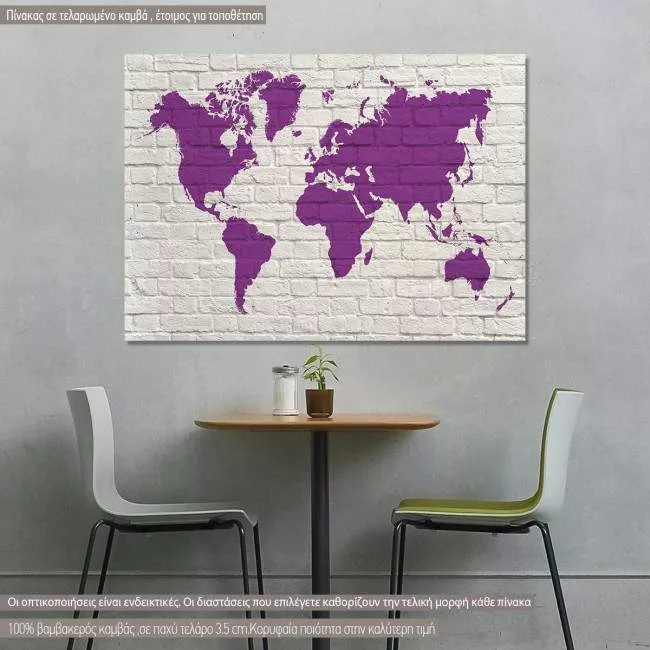 Πίνακας σε καμβά χάρτης παγκόσμιος μωβ, Purple World Map