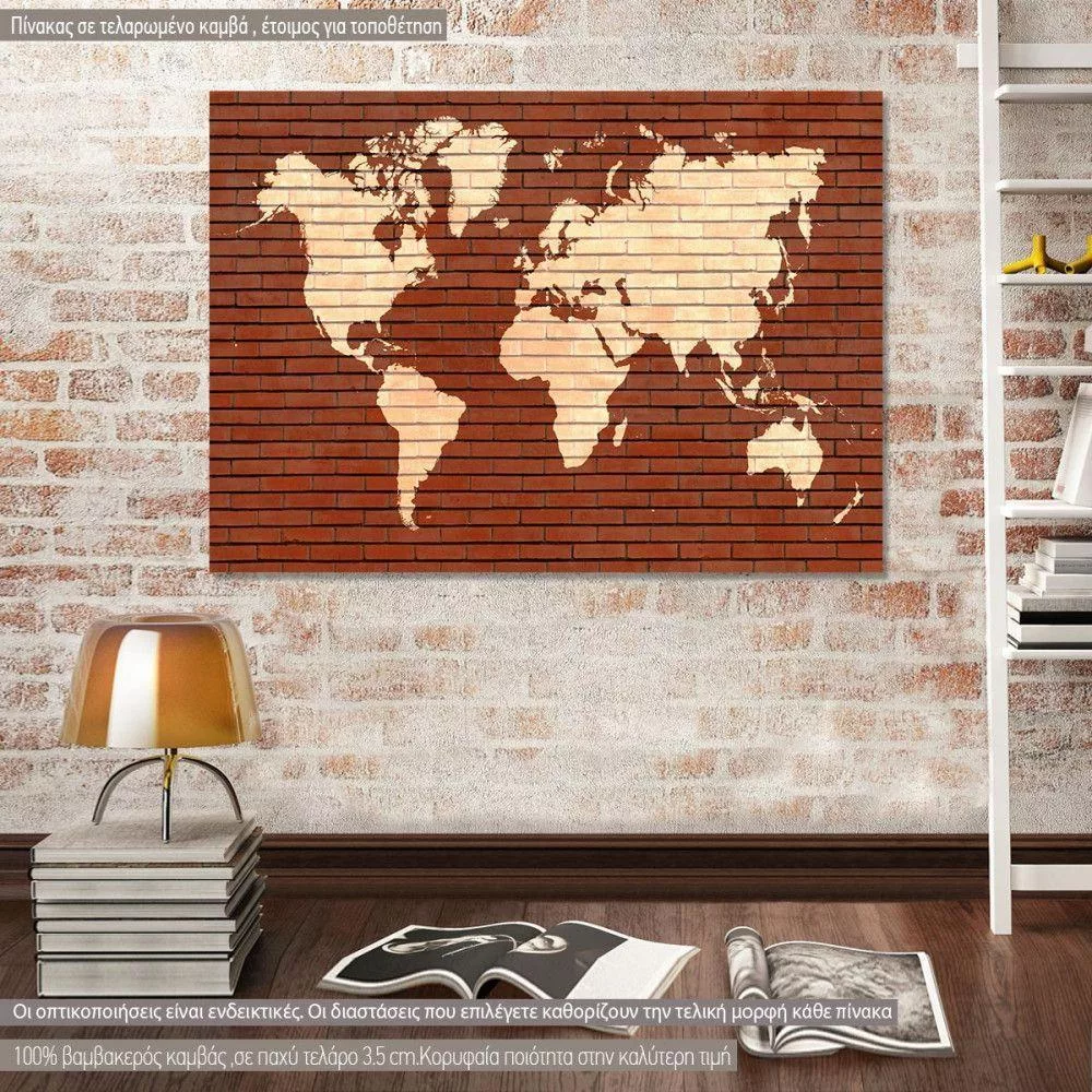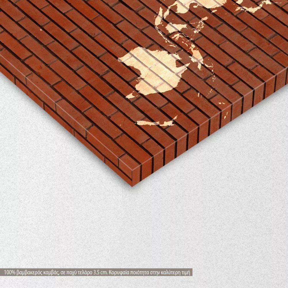 Πίνακας σε καμβά χάρτης παγκόσμιος, Red Bricks World Map
