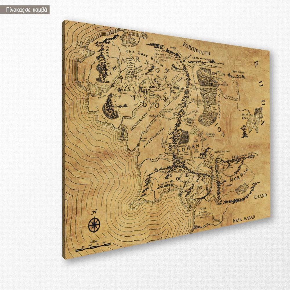 Χάρτης της Μέσης Γης reart, πίνακας σε καμβά