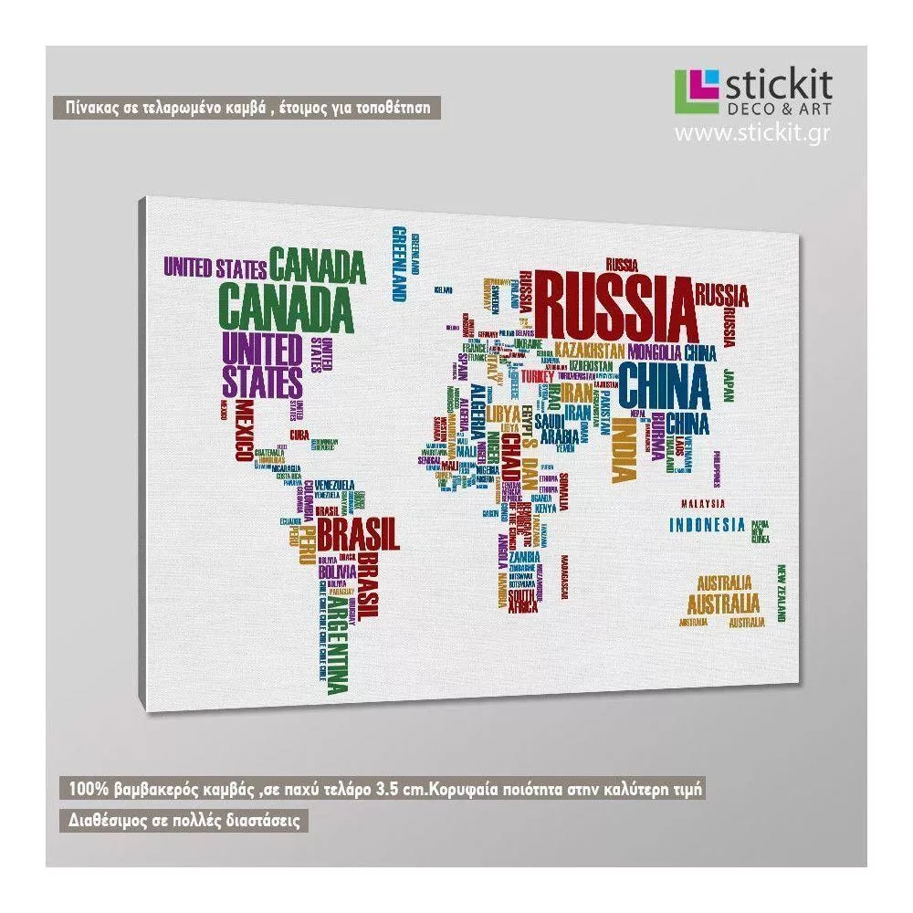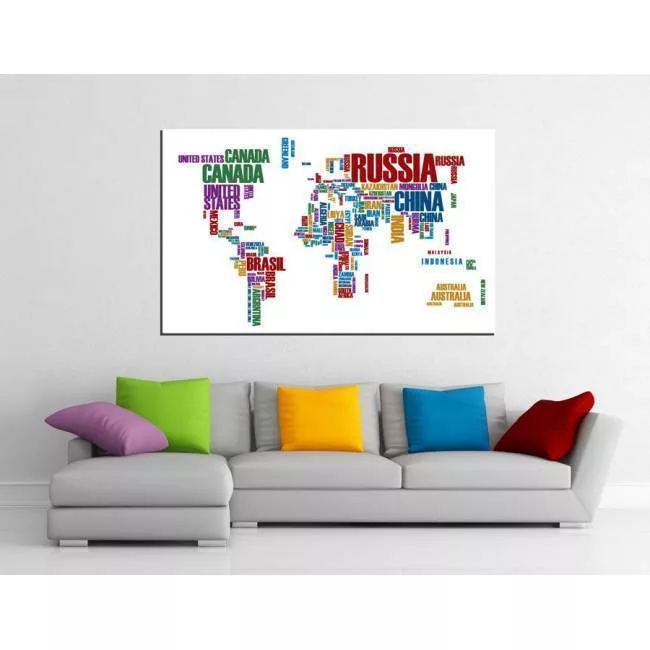 Πίνακας σε καμβά Χρωματιστός παγκόσμιος χάρτης με λέξεις