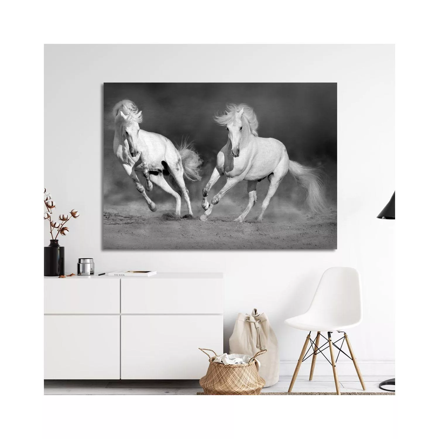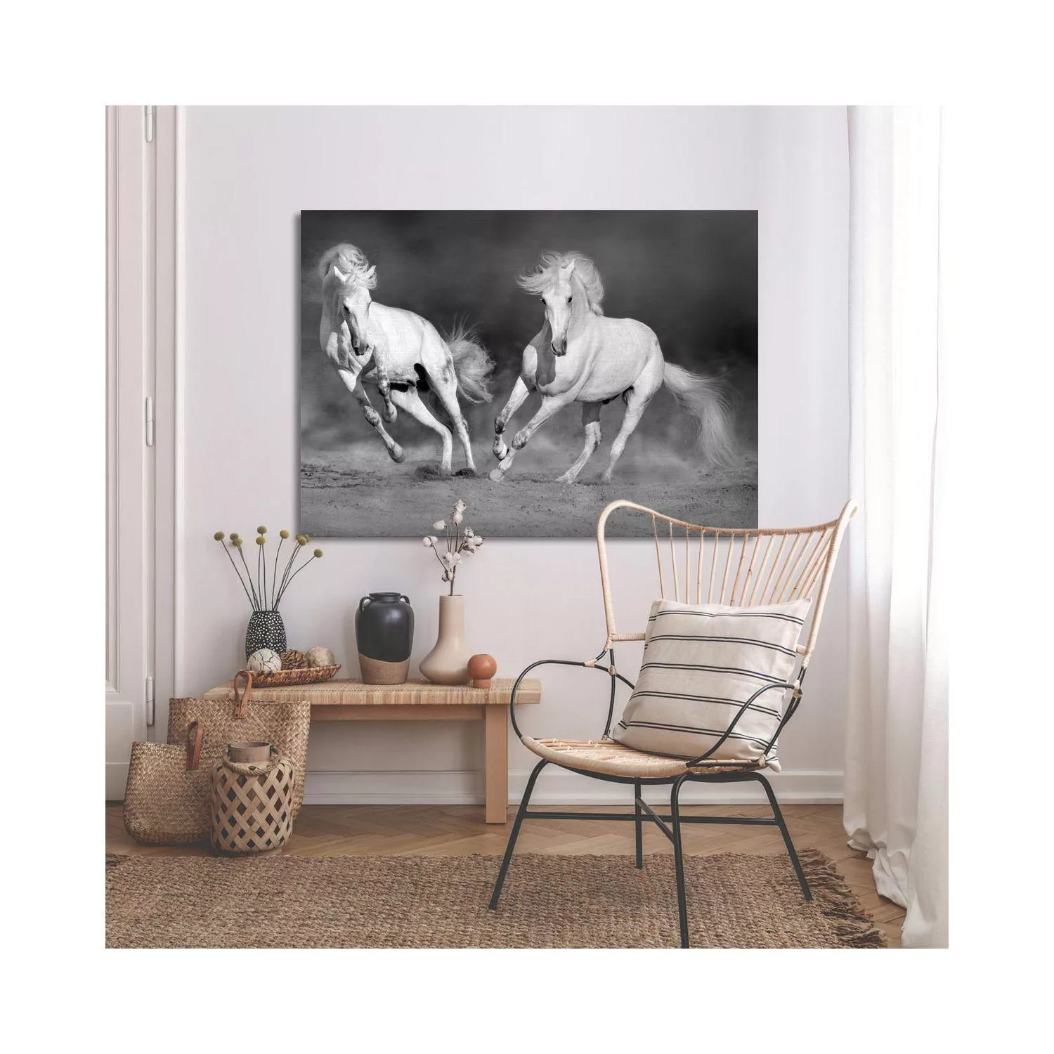 Πίνακας σε καμβά Λευκά άλογα grayscale