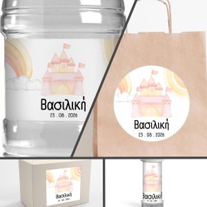 Αυτοκόλλητη ετικέτα Κάστρο και Ουράνιο Τόξο, με όνομα και ημερομηνία