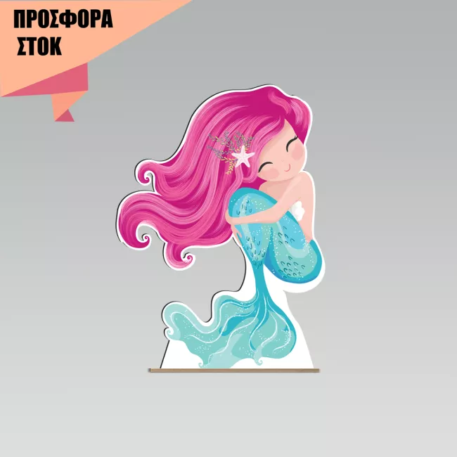 Χαριτωμένη γοργόνα με αστερία, προϊόν 28764, ξύλινη φιγούρα εκτυπωμένη, προσφορά
