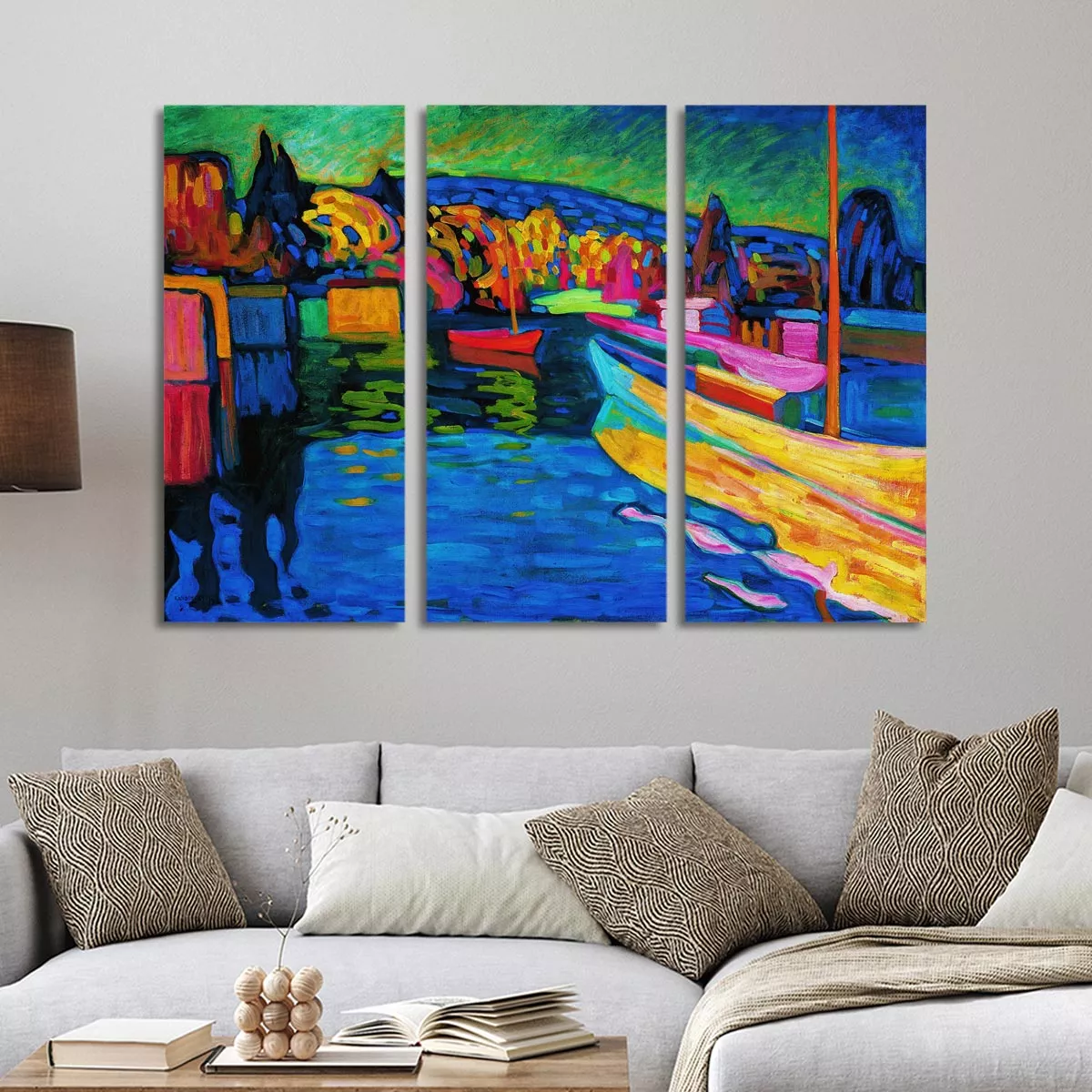 Πίνακας σε καμβά, Προσφορά 150x100 Autumn landscape with boats, Kandinsky W, τρίπτυχος