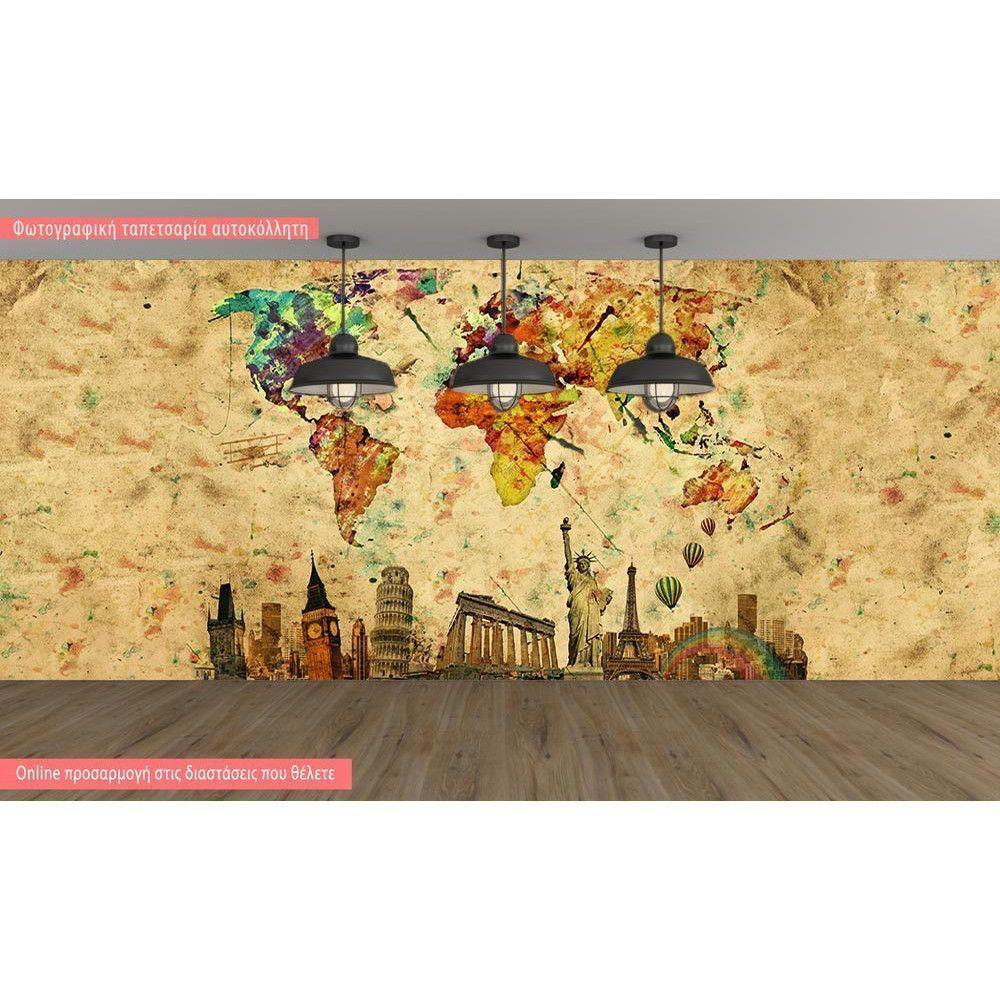 Ταπετσαρία τοίχου Παγκόσμιος τουριστικός χάρτης πανοραμικός