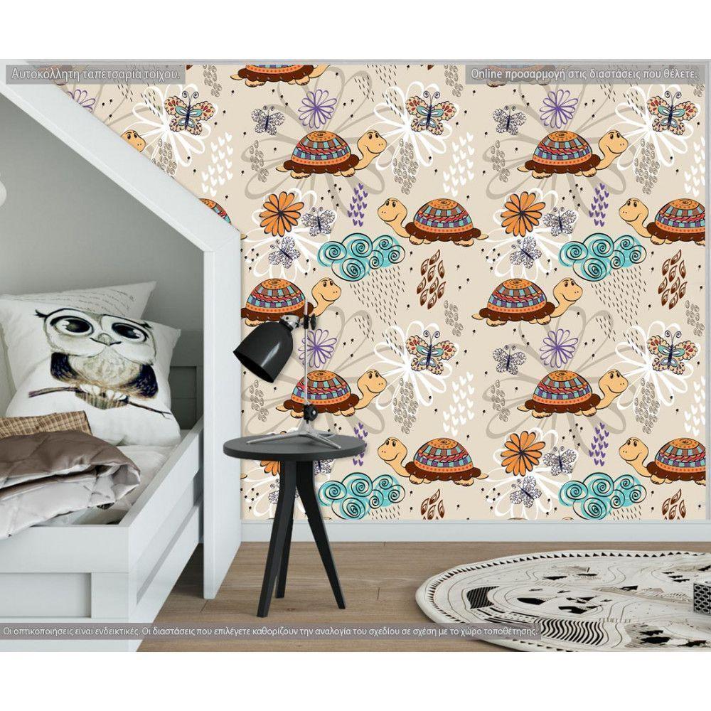 Ταπετσαρία τοίχου Hand drawed turtles, μοτίβο