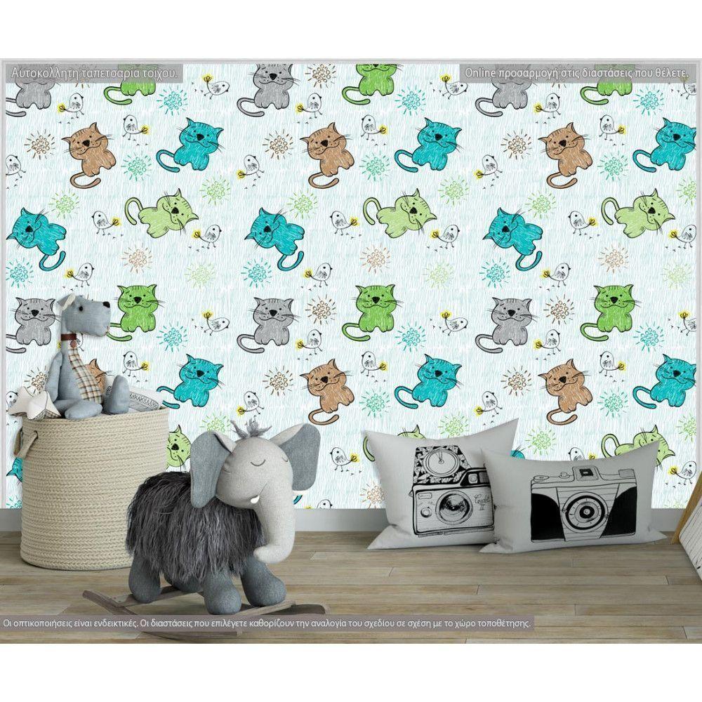 Ταπετσαρία τοίχου Hand drawn cats (boy), μοτίβο