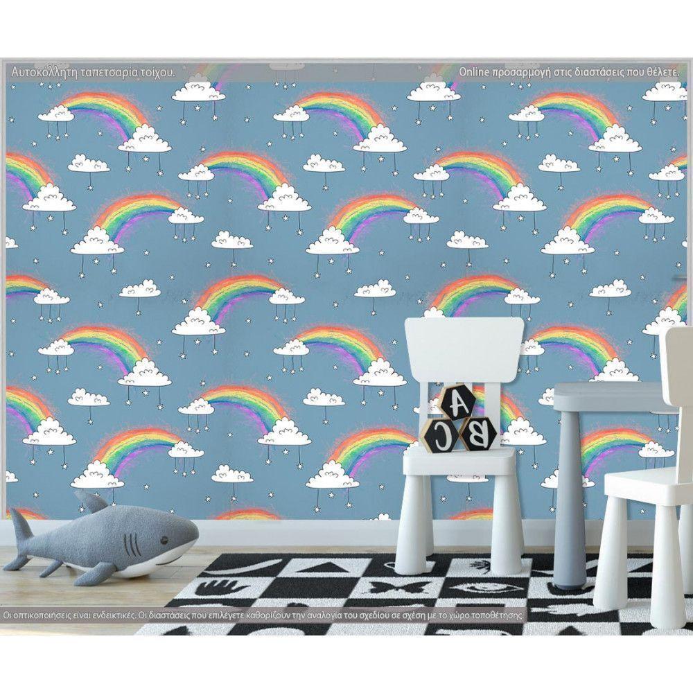 Ταπετσαρία τοίχου Rainbows and clouds (blue), μοτίβο