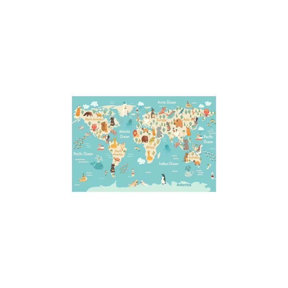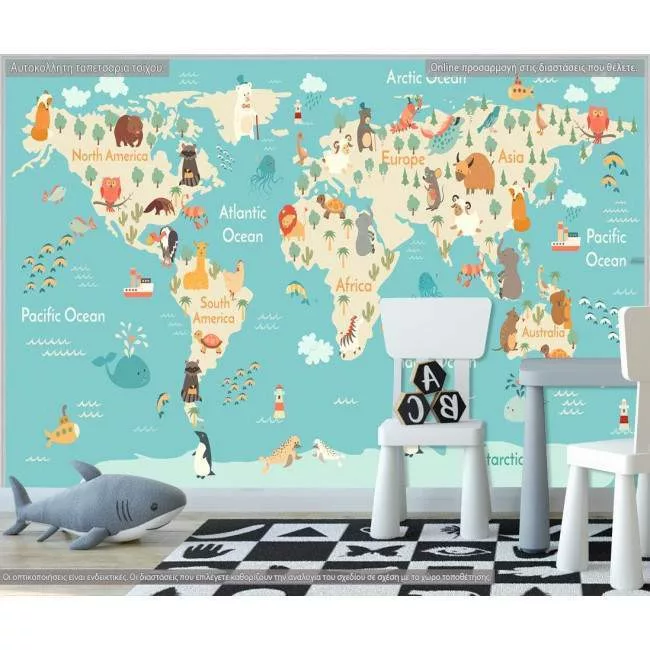 Ταπετσαρία τοίχου Χάρτης με ζωάκια κάθε ηπείρου, αγγλικά
