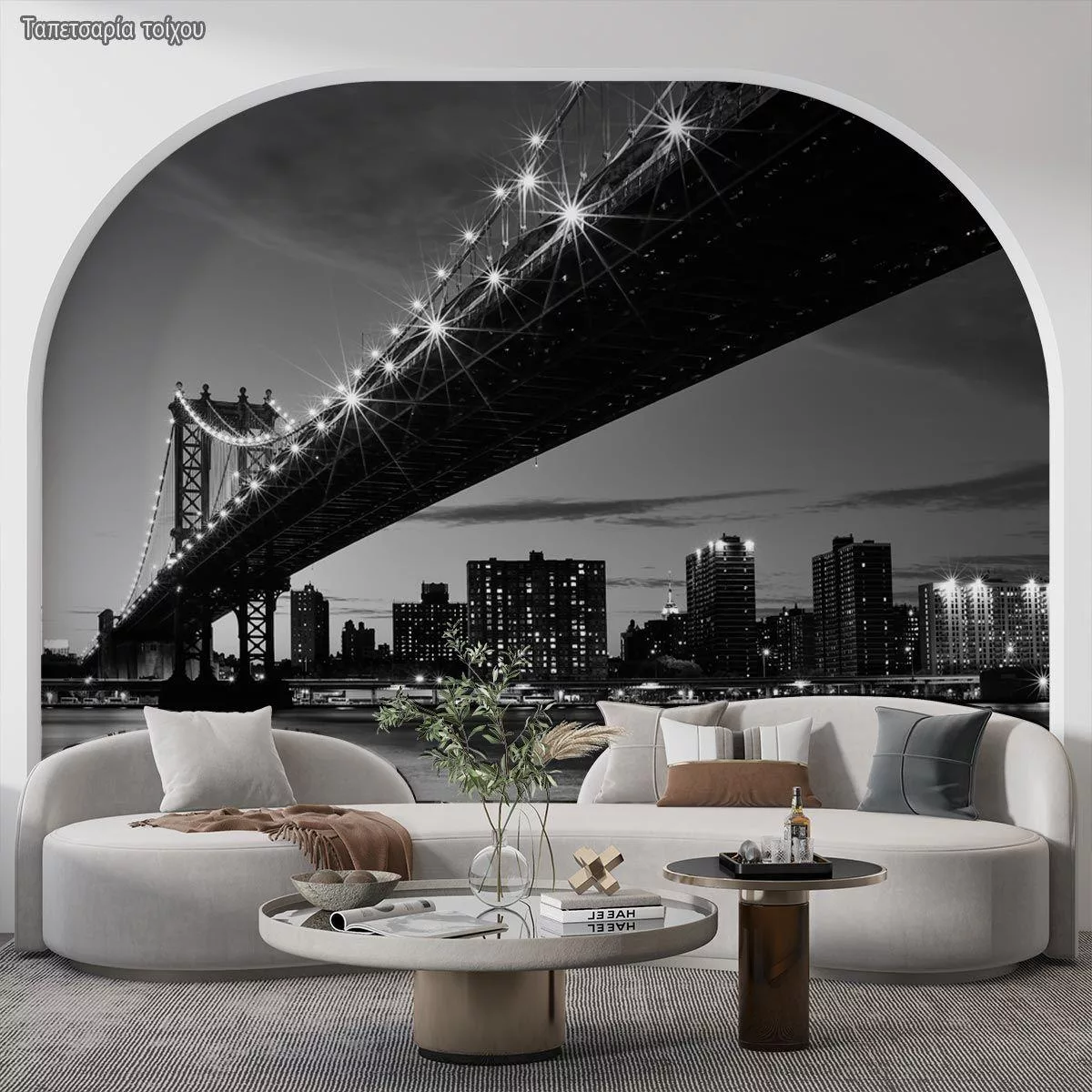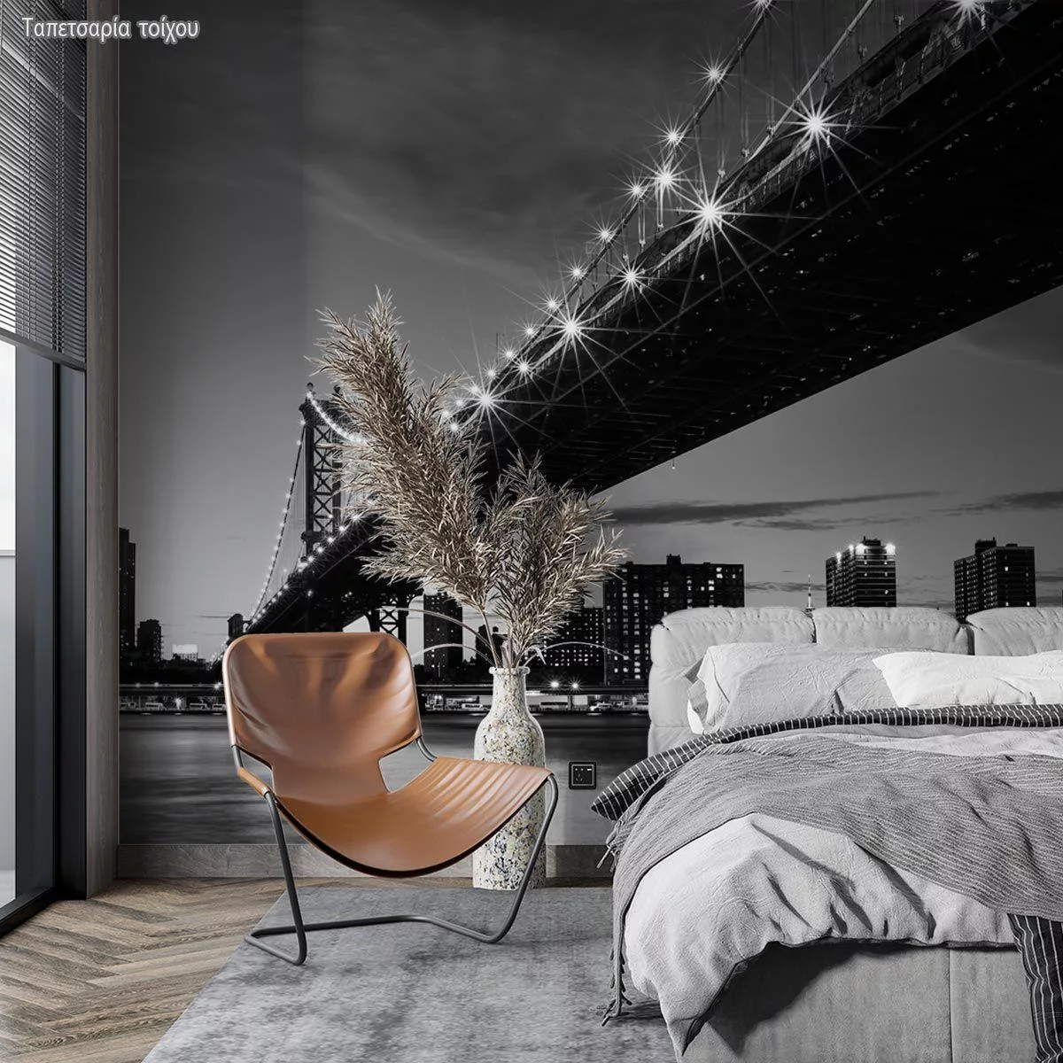 Ταπετσαρία τοίχου Η γέφυρα του Μανχάταν grayscale