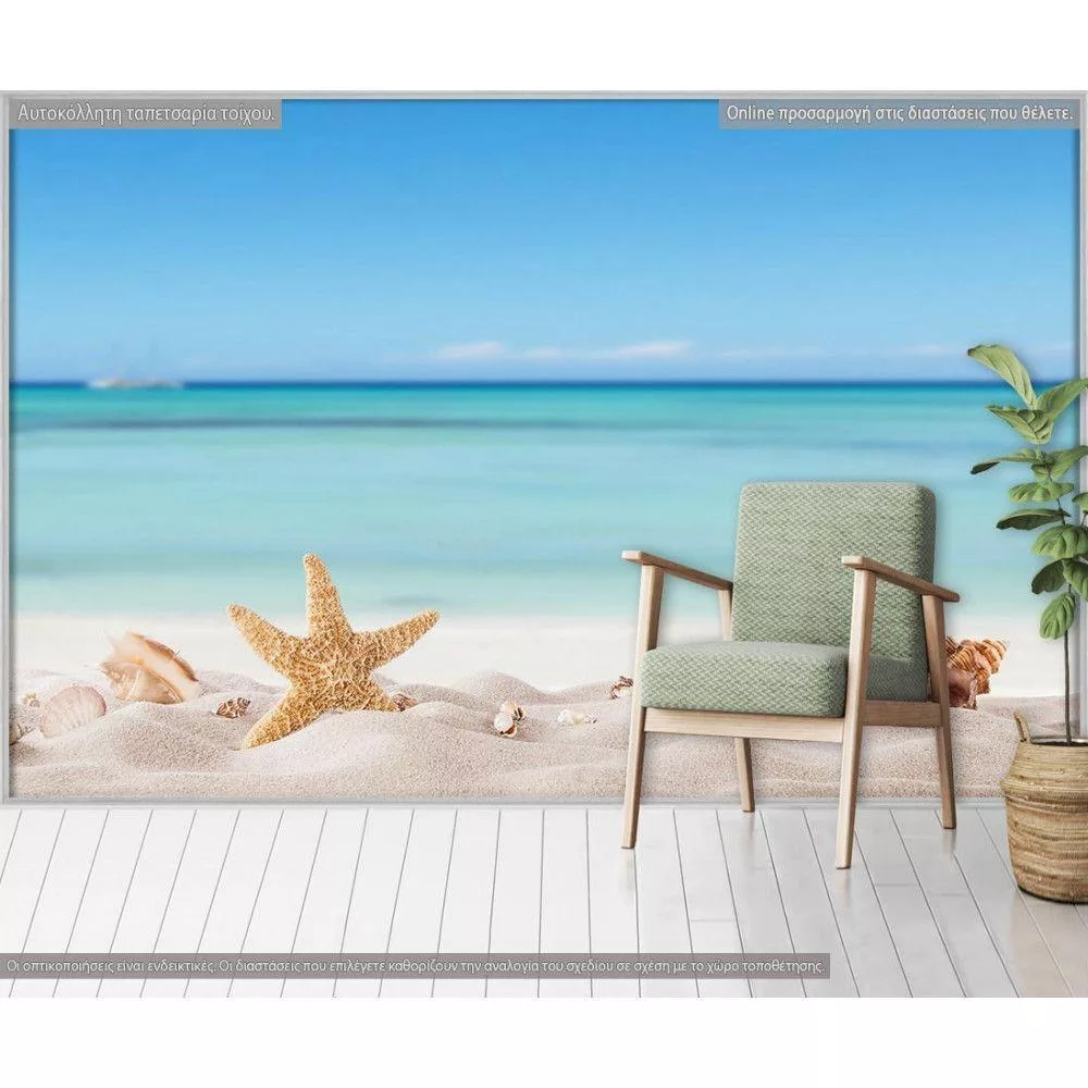Ταπετσαρία τοίχου Summer beach with strafish and shells