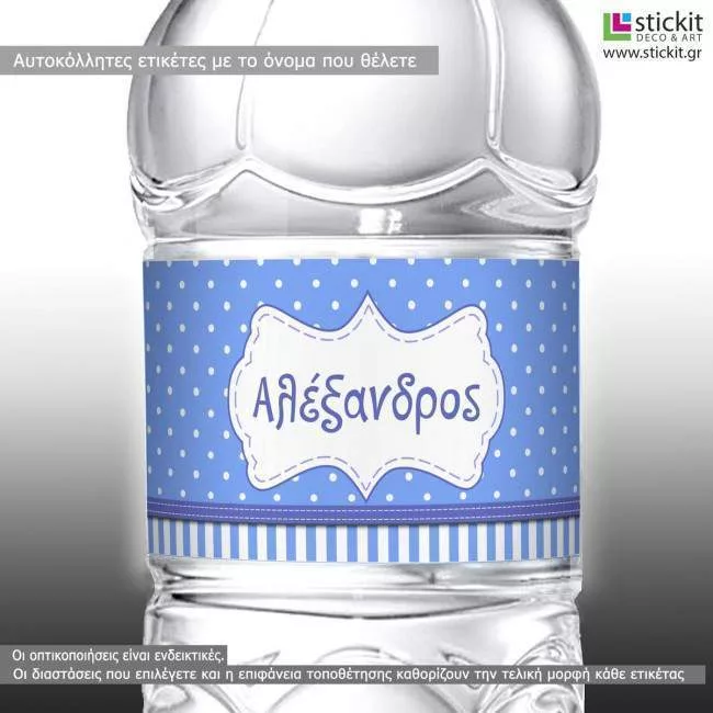 Αυτοκόλλητη ετικέτα Πουά,ρίγες και πλαίσιο, με όνομα και ημερομηνία