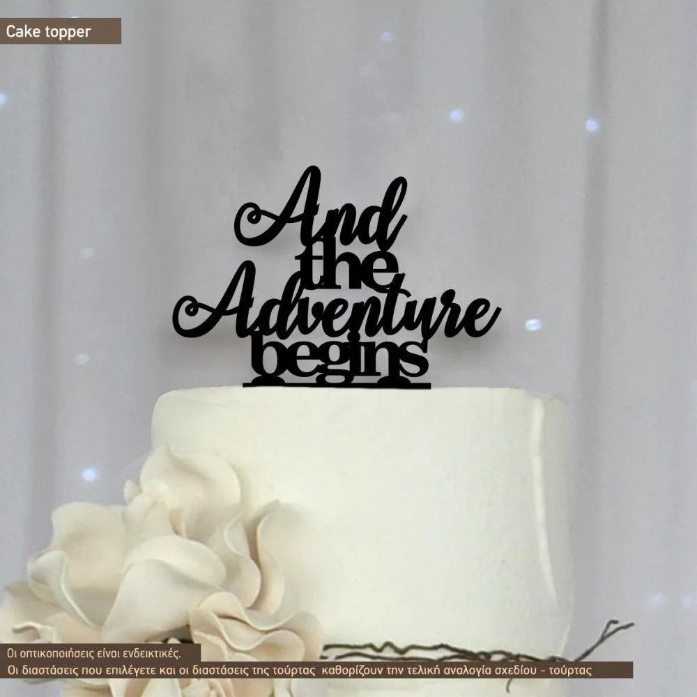 And the adventure begins topper τούρτας ξύλινο ή plexi