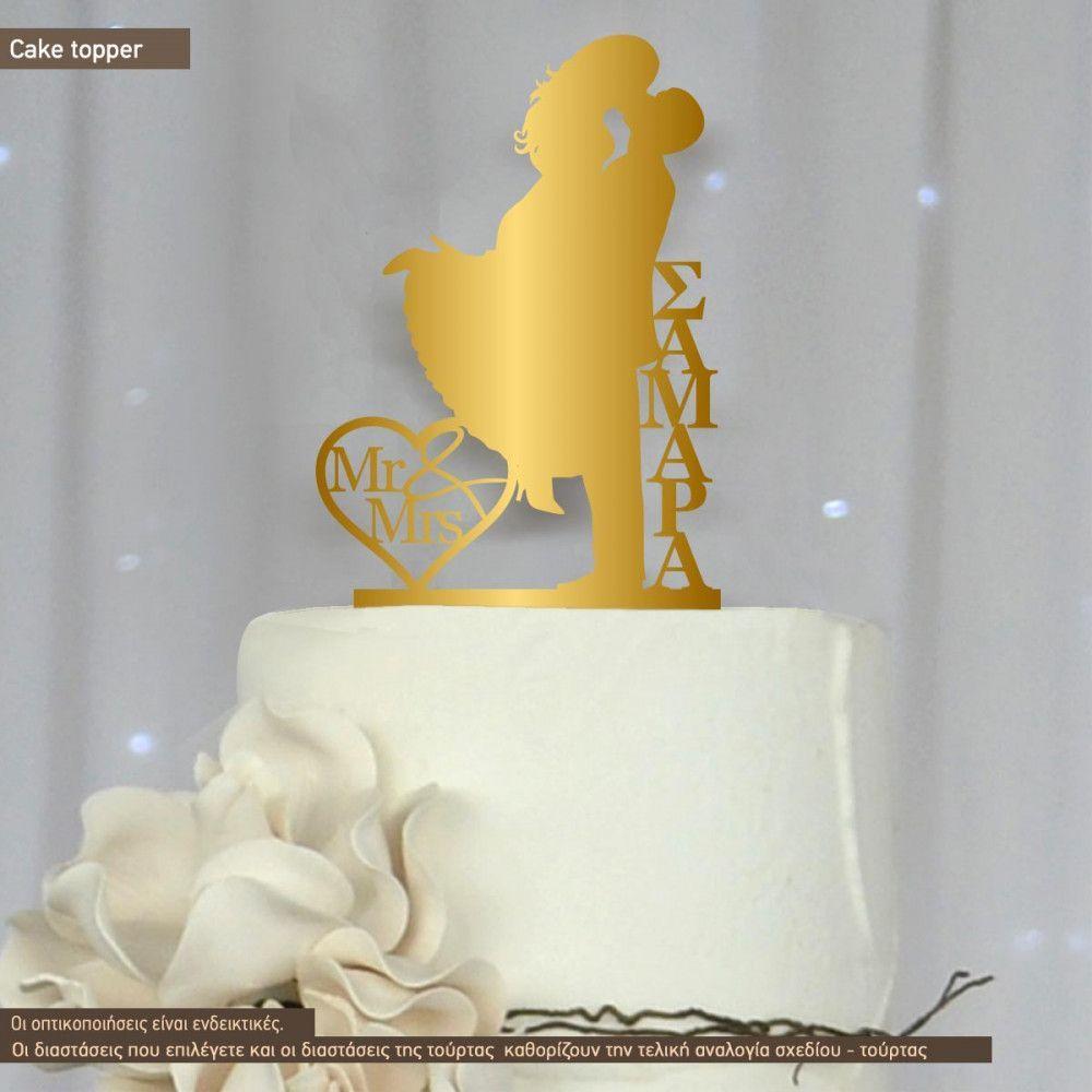 Mr Mrs με φιγούρες ζευγαριού topper τούρτας ξύλινο ή plexi