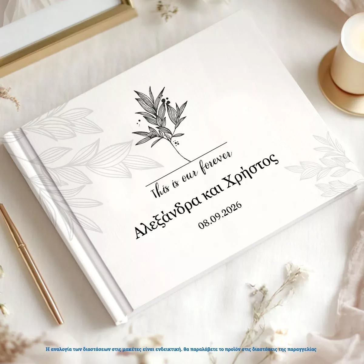 Mε τα ονόματα και την ημερομηνία του γάμου σας.