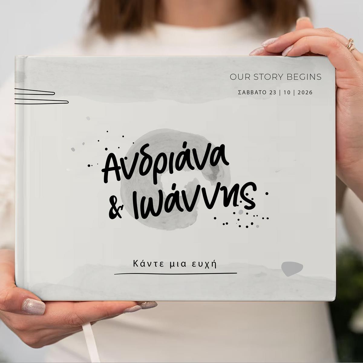 Mε τα ονόματα και την ημερομηνία του γάμου σας.