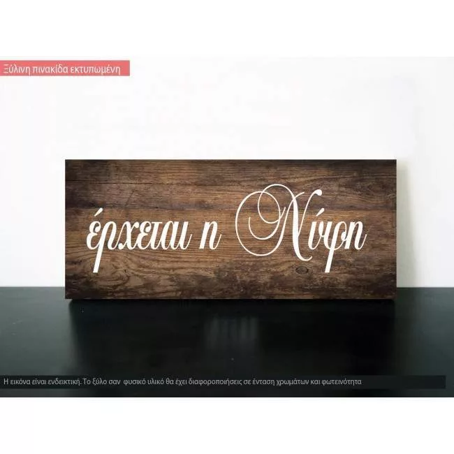 Έρχεται η νύφη πινακίδα ξύλινη εκτυπωμένη