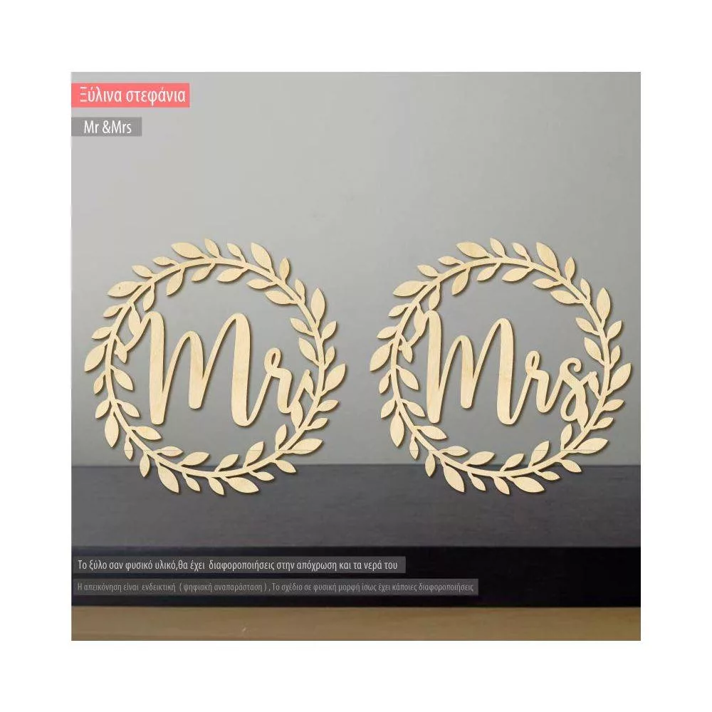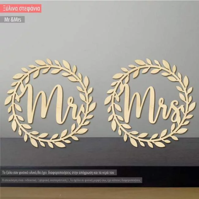 Mr & Mrs, ξύλινο στεφάνι