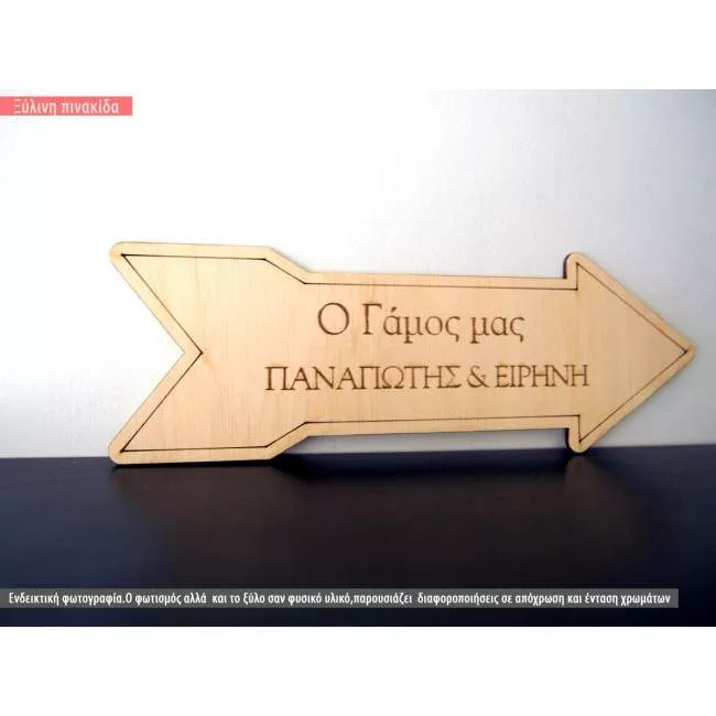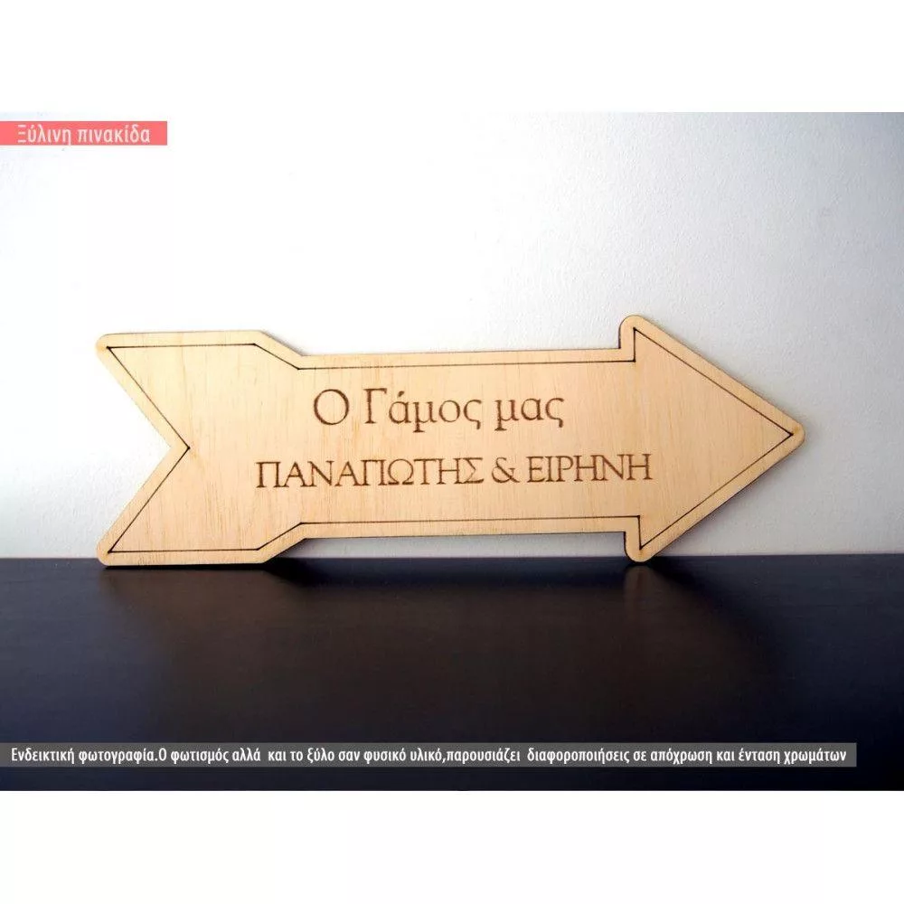 Ο γάμος μας με ονόματα, πινακίδα ξύλινη βέλος