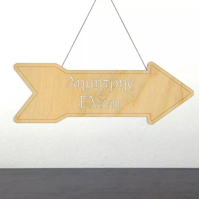 Πινακίδα ξύλινη βέλος, με ονόματα