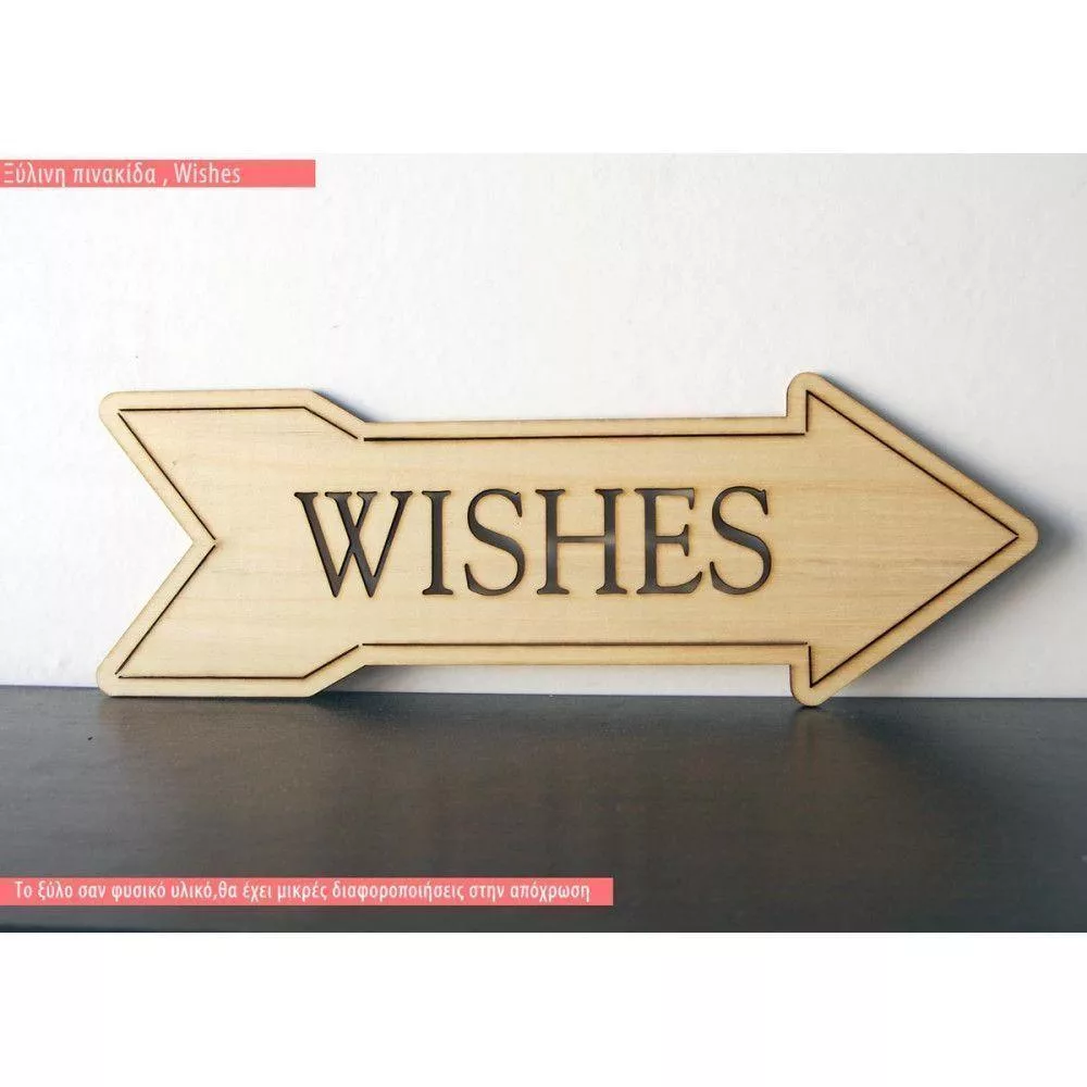 Πινακίδα ξύλινη βέλος WISHES