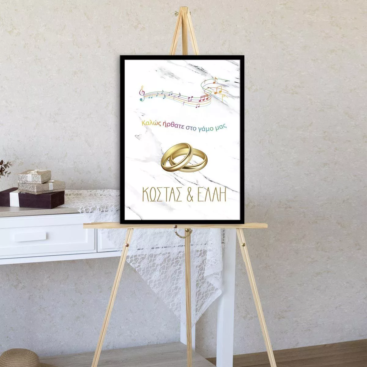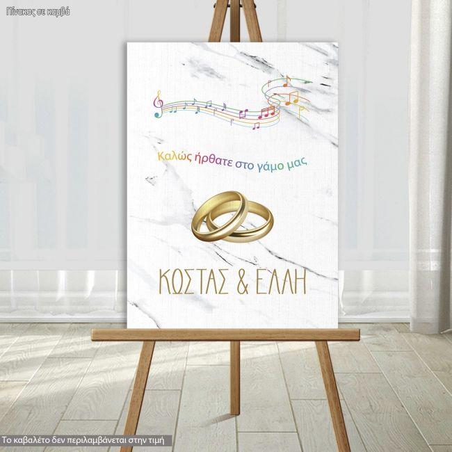Πίνακας καλωσόρισμα γάμου, Μουσική πεντάγραμμο, προσωποποιημένος