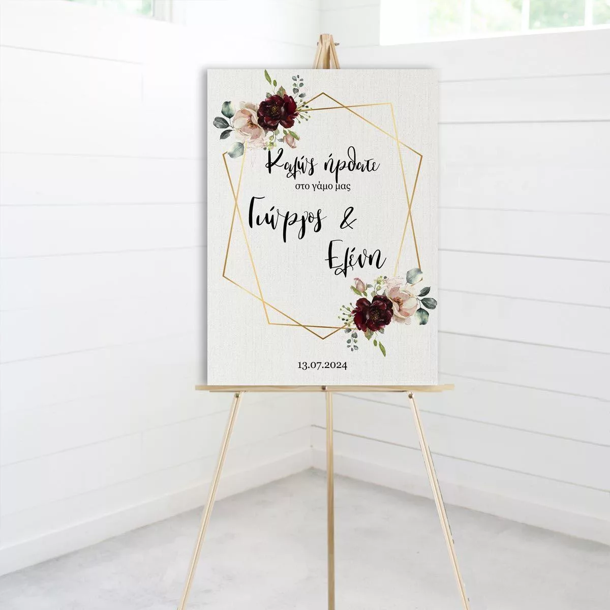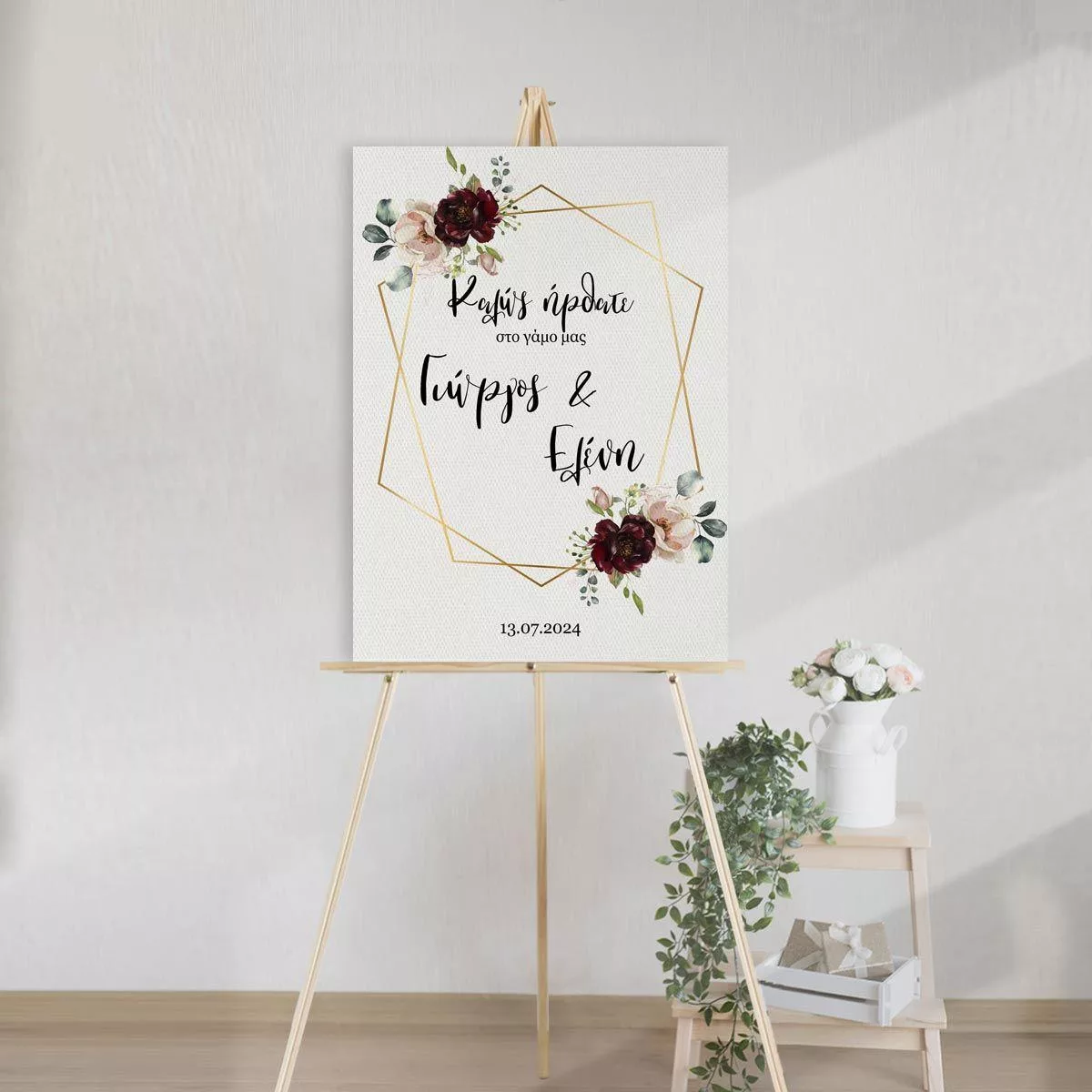 Πίνακας καλωσόρισμα γάμου, Μπορντώ λουλούδια