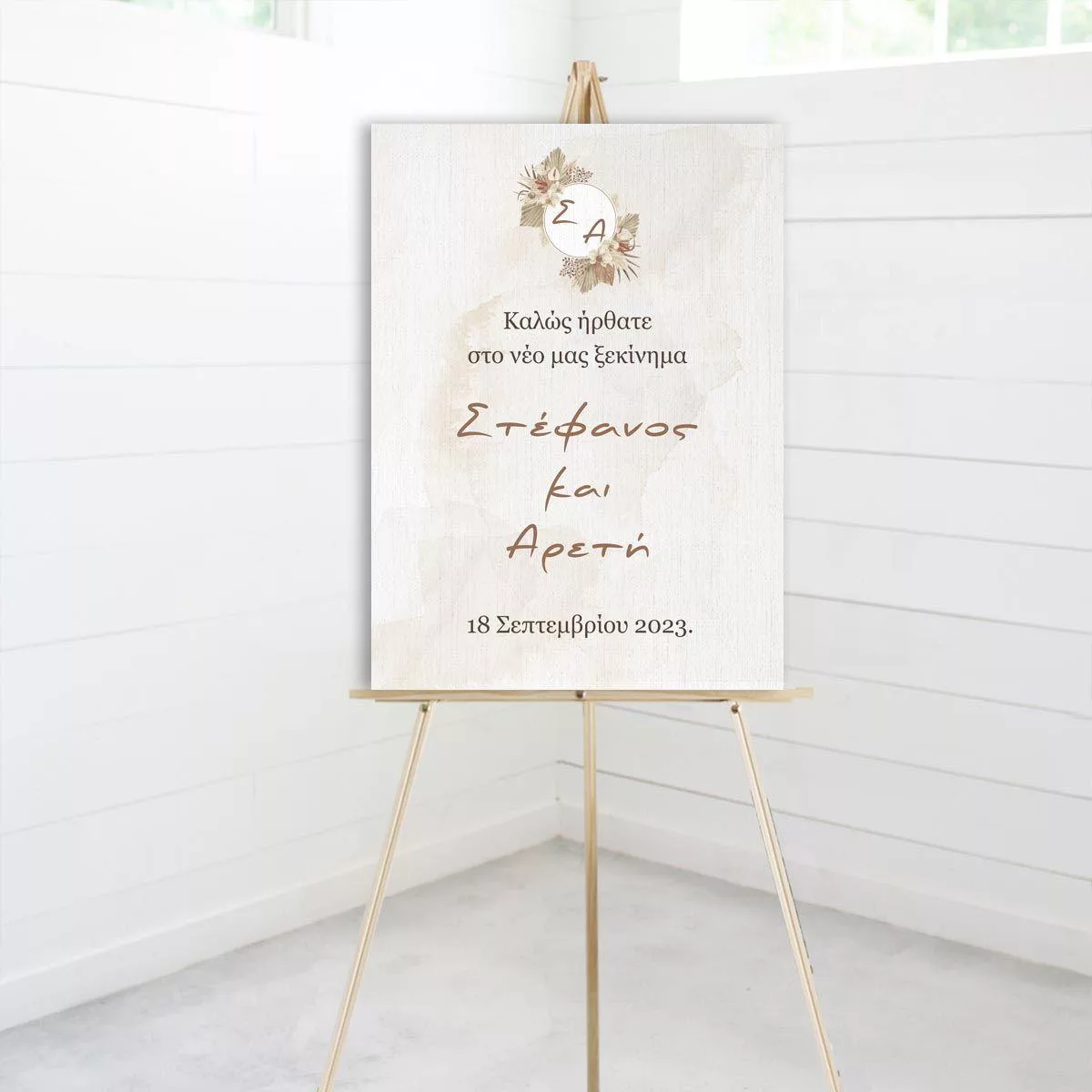 Πίνακας καλωσόρισμα γάμου, Νέο ξεκίνημα, Pampas grass, προσωποποιημένος