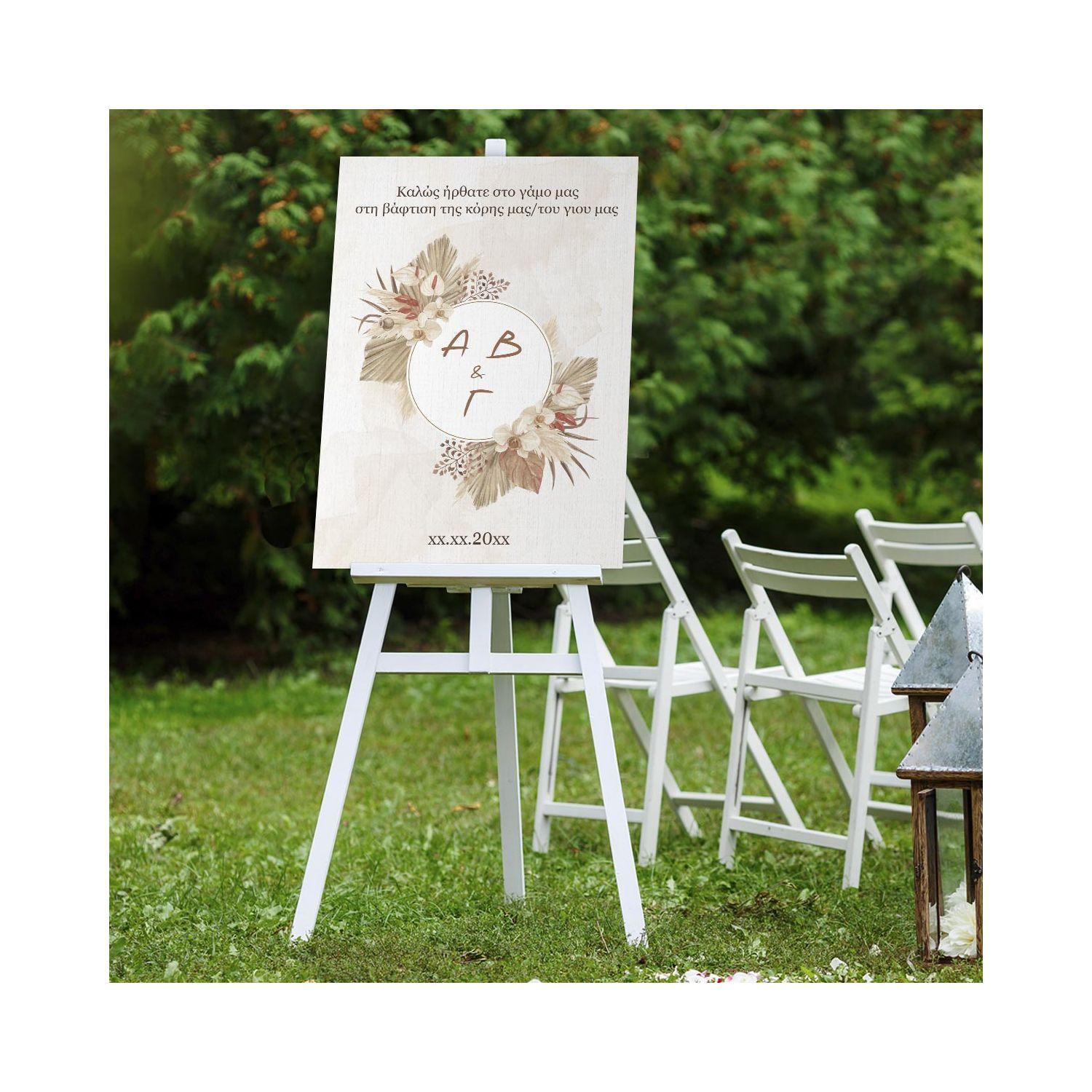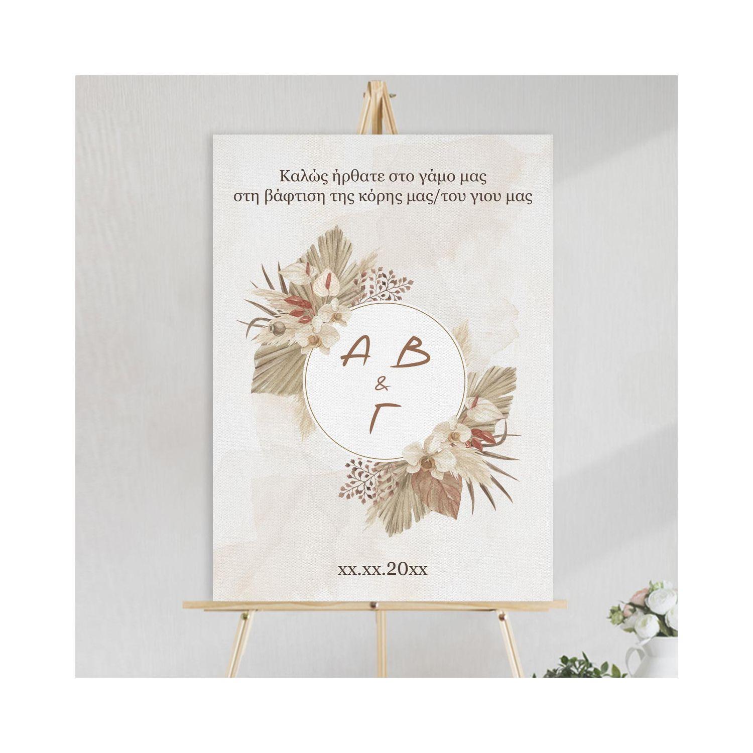 Πίνακας καλωσόρισμα γάμου, Pampas grass με αρχικά